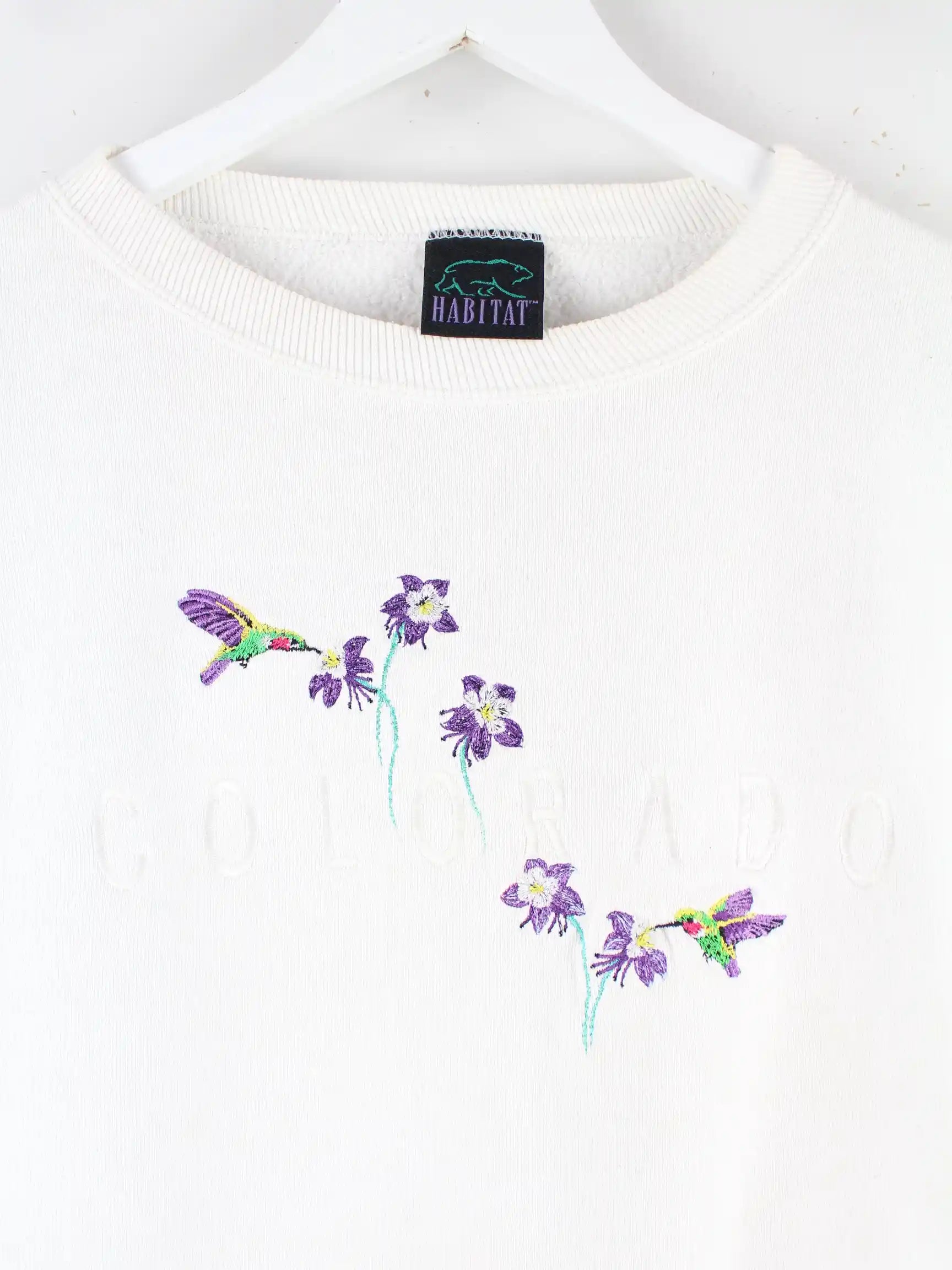 Vintage Damen 90s Colorado Embroidered Sweater Weiß L