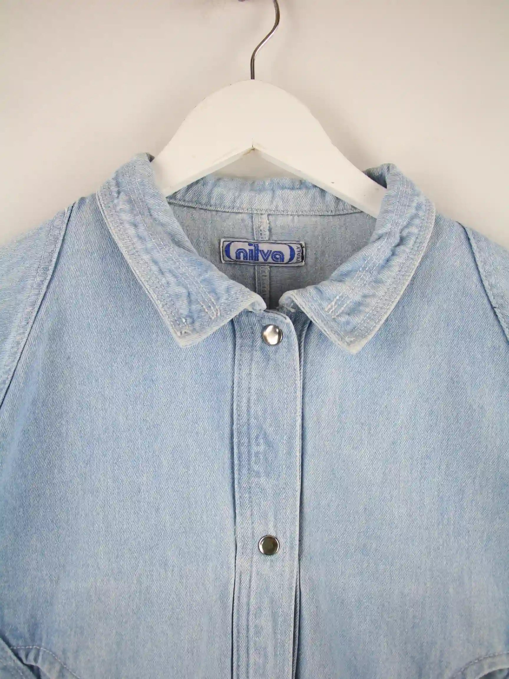 Blaue Vintage Jacke aus den 90'ern in Größe S. Sie ist aus Baumwolle gefertigt und in sehr gutem Zustand bei uns vorrätig.