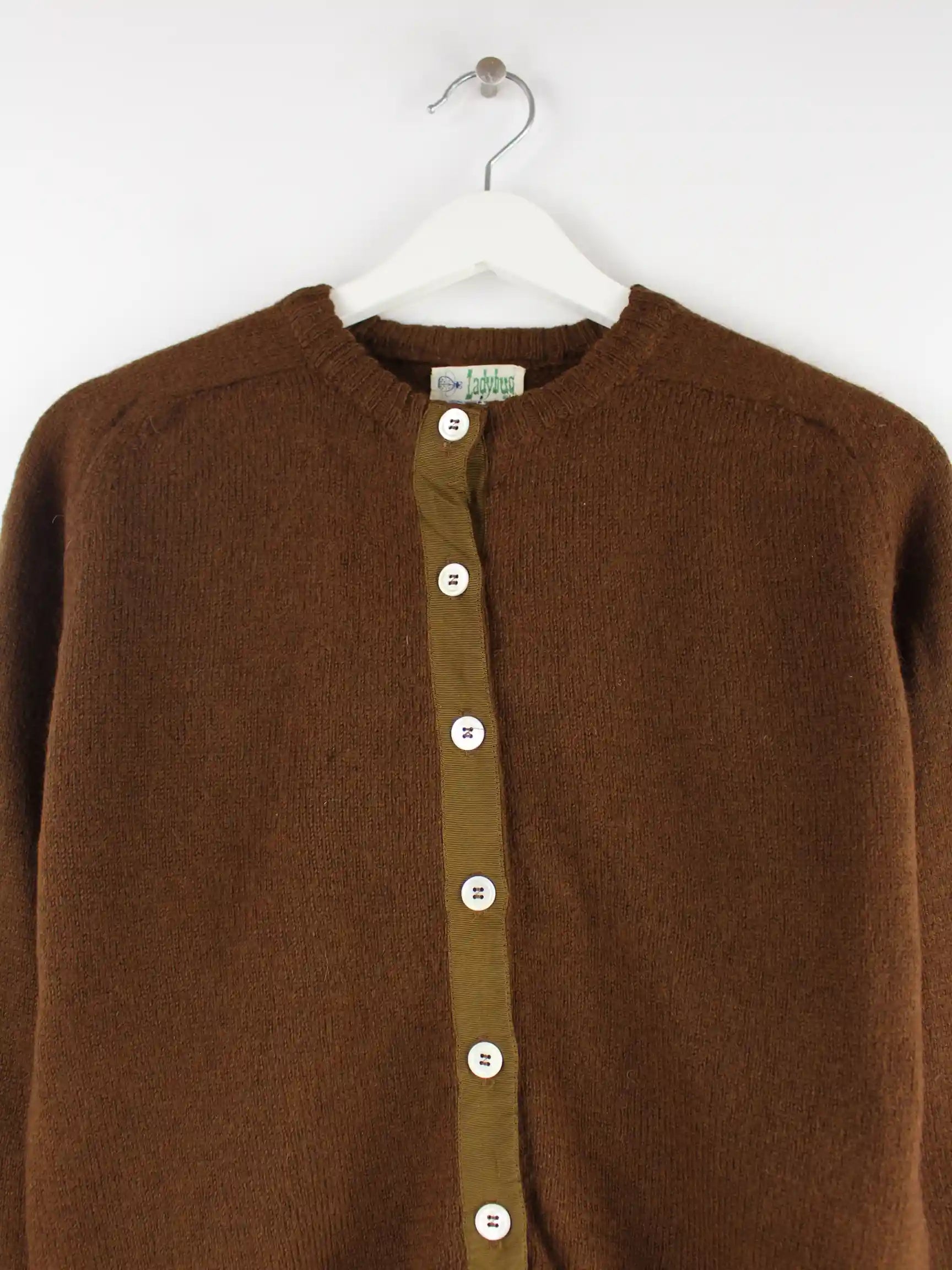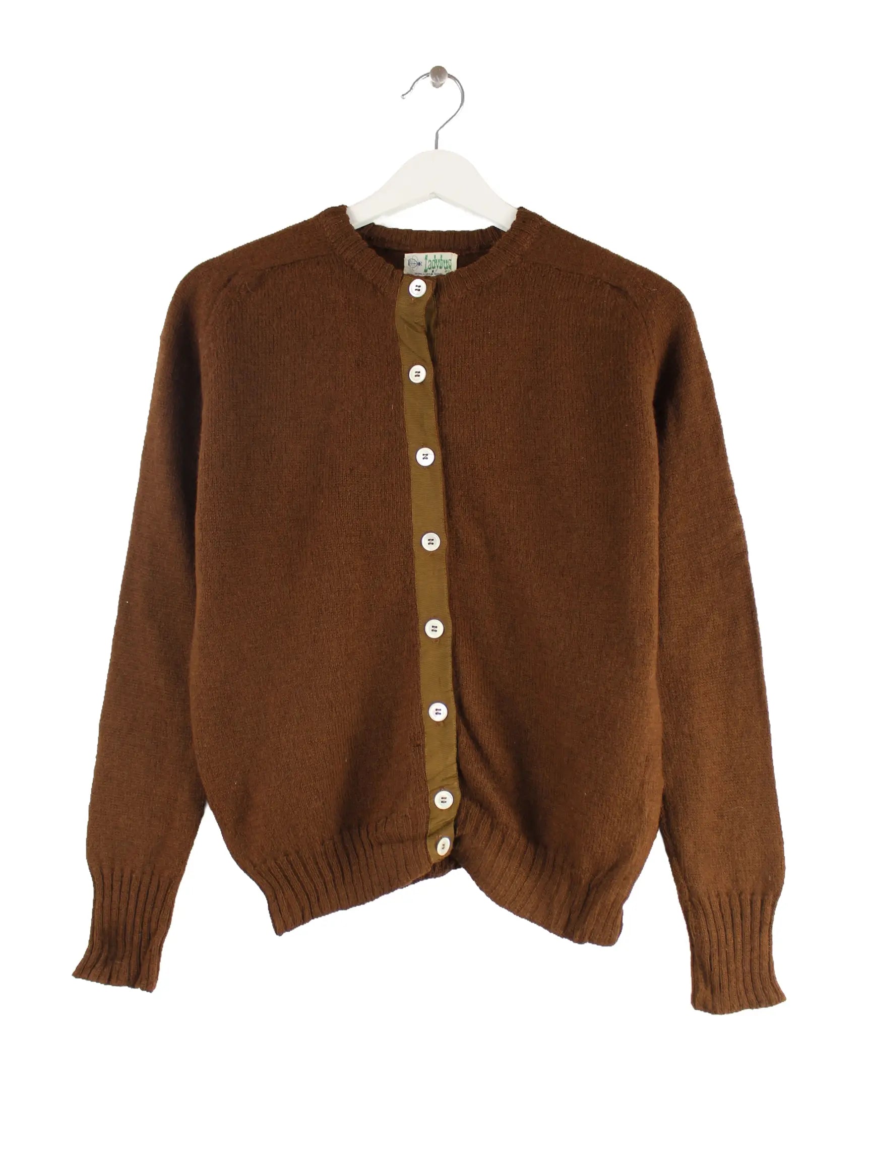 Vintage Strickjacke in Größe XS aus den 90'ern. Sie ist aus Baumwolle gefertigt und in Braun im Bestand.