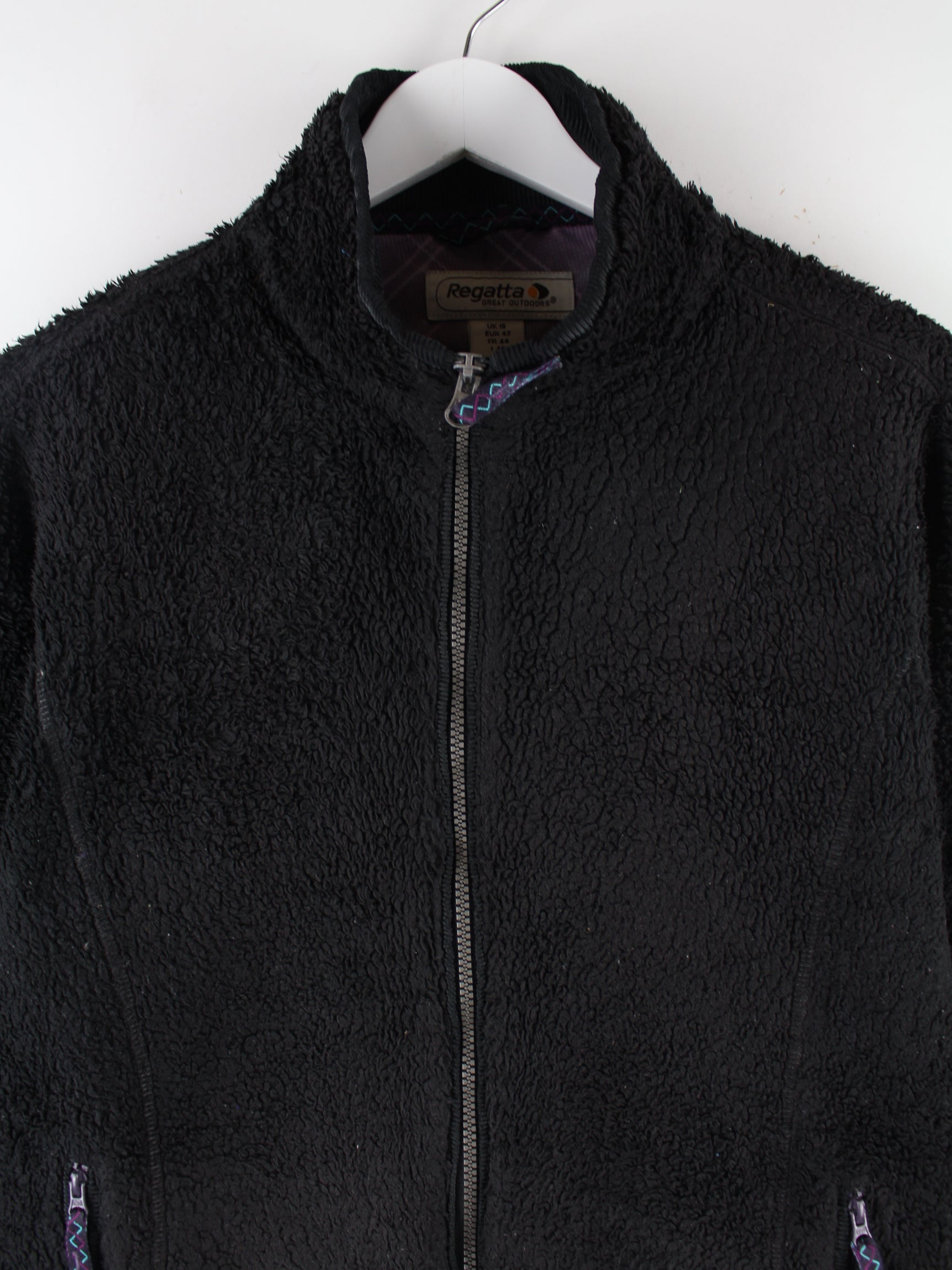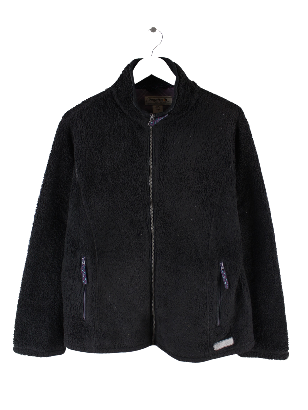 Vintage Damen 90s Teddy Fleece Jacke Schwarz M