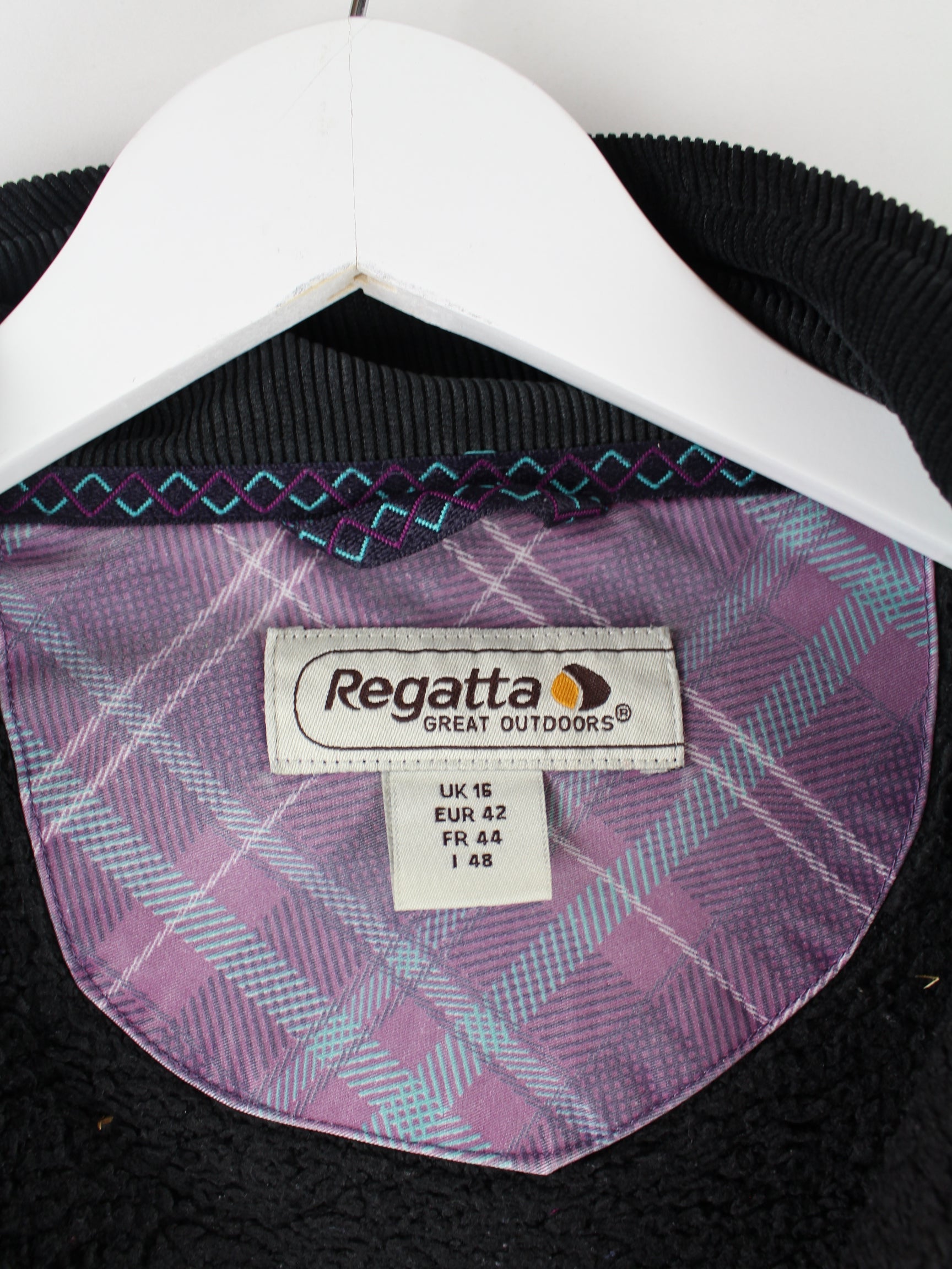 Schwarze Vintage Leichte Jacke aus den 90'ern in Größe M. Sie ist aus gemütlichem Fleece und in gutem Zustand bei uns vorrätig.