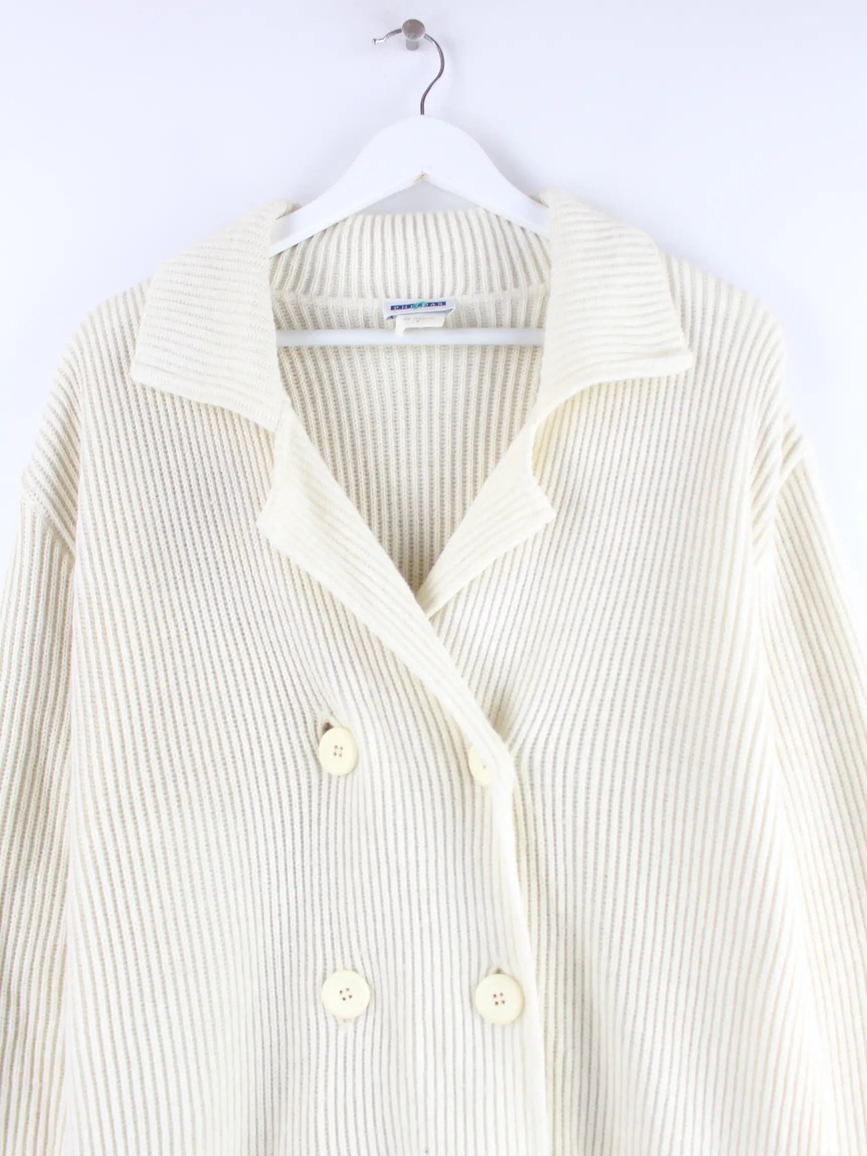 Vintage Strickjacke in Größe S. Sie ist aus Acryl und in Beige in Stock.