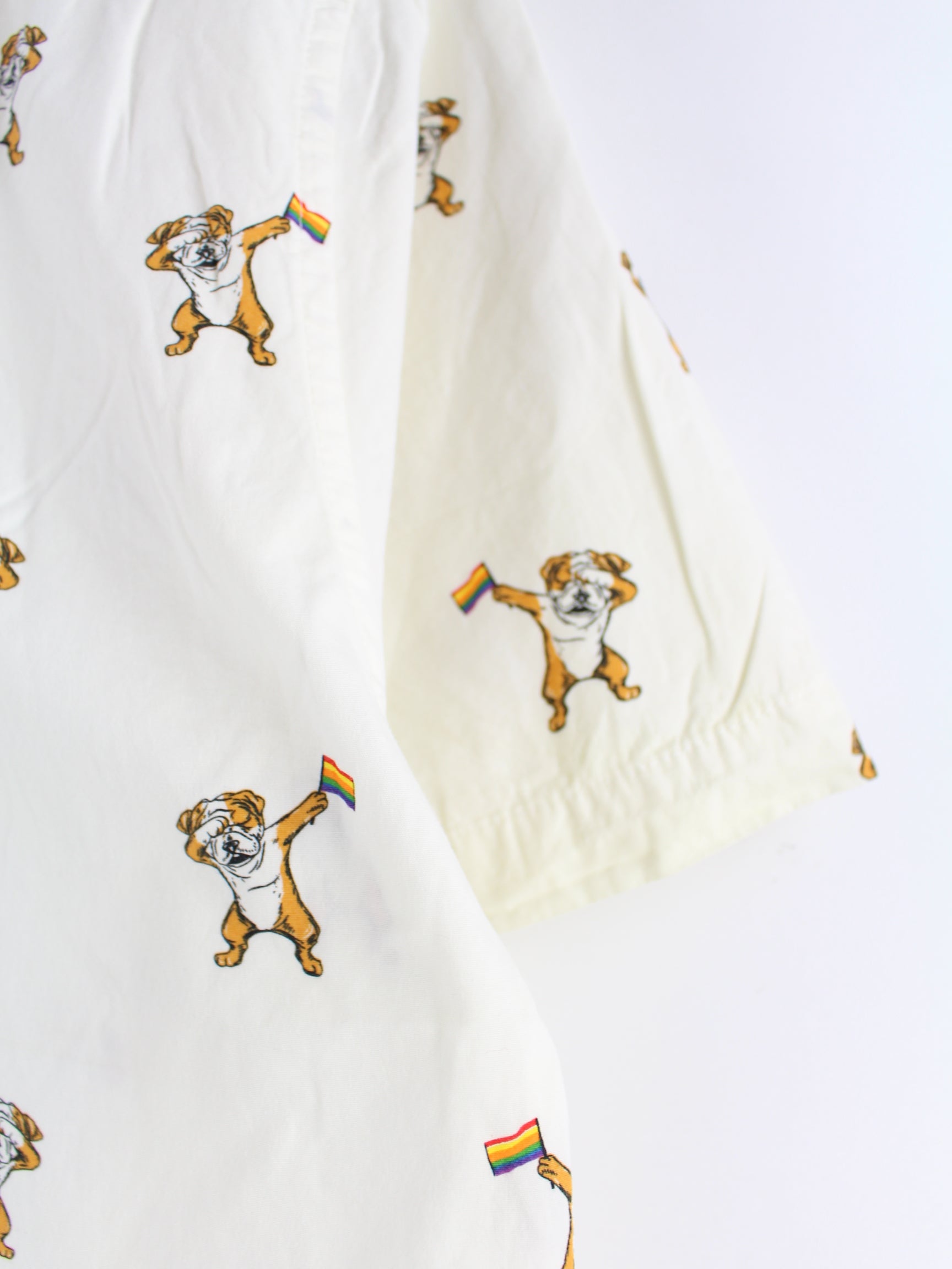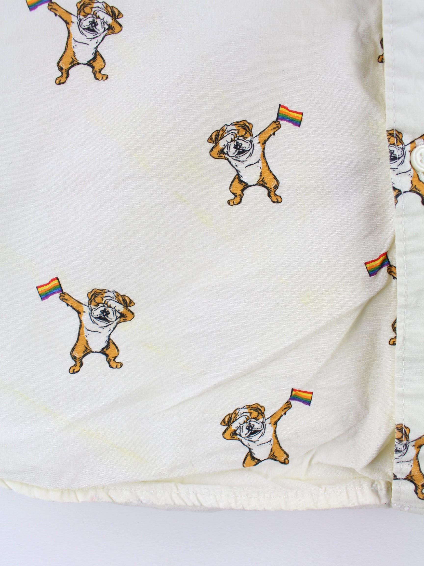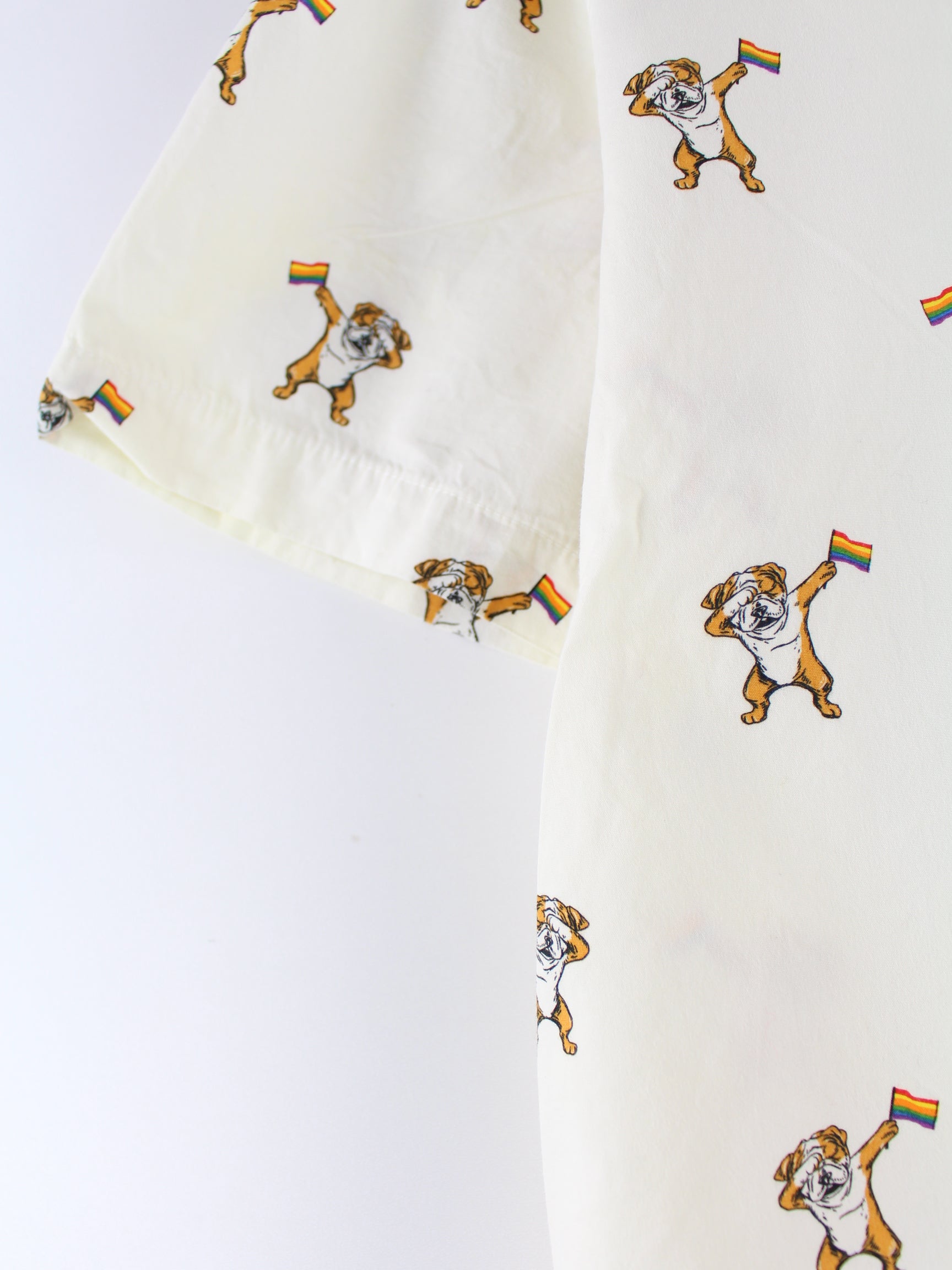 Vintage Dog Rainbow Pattern Short Sleeve Shirt Beige XL