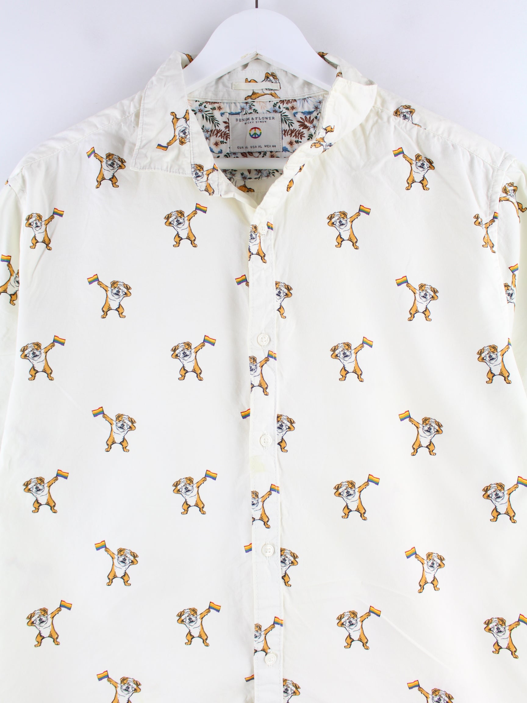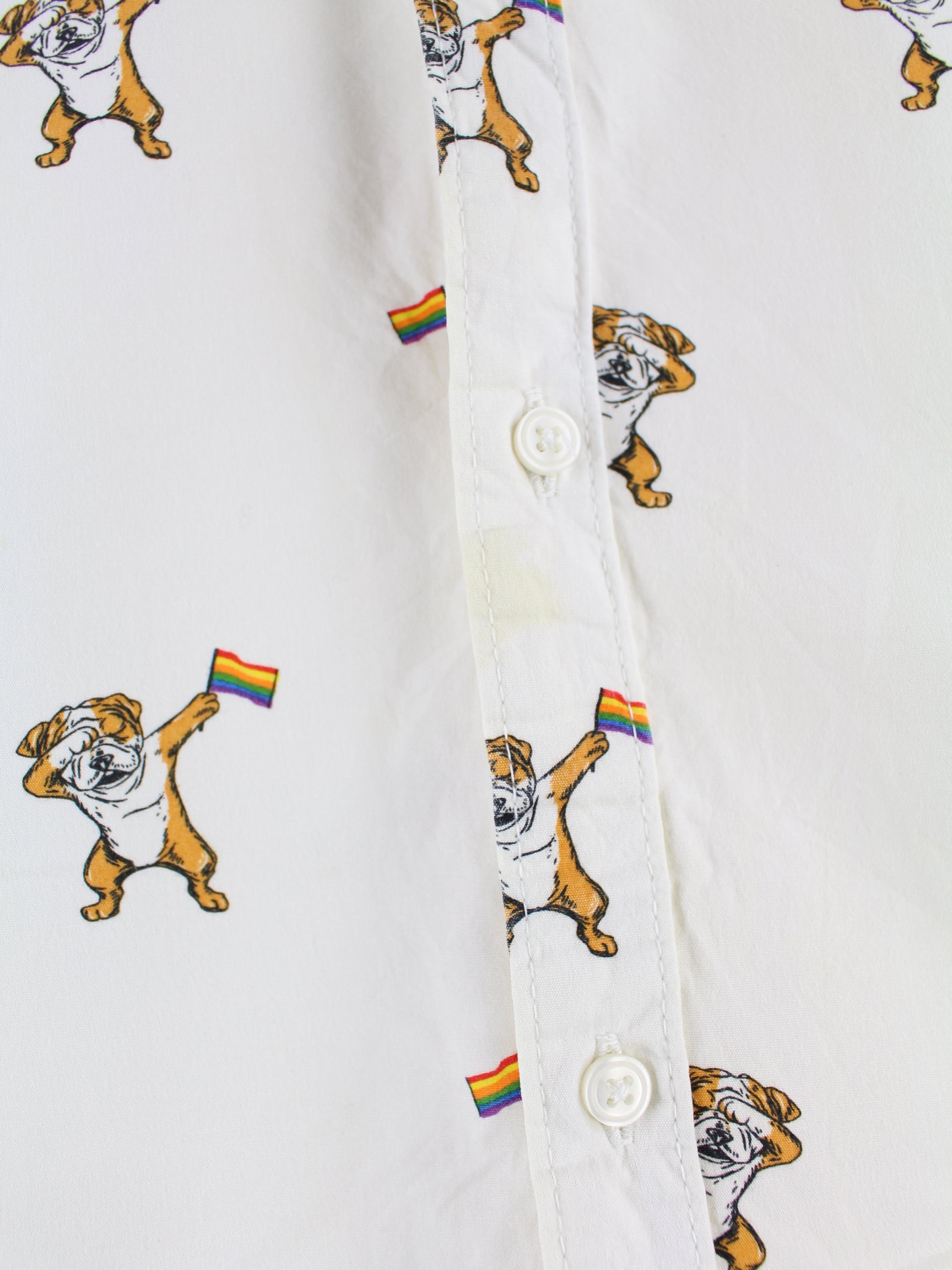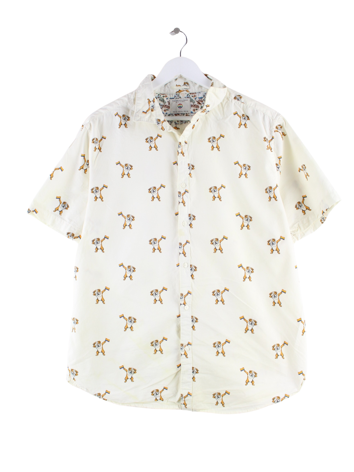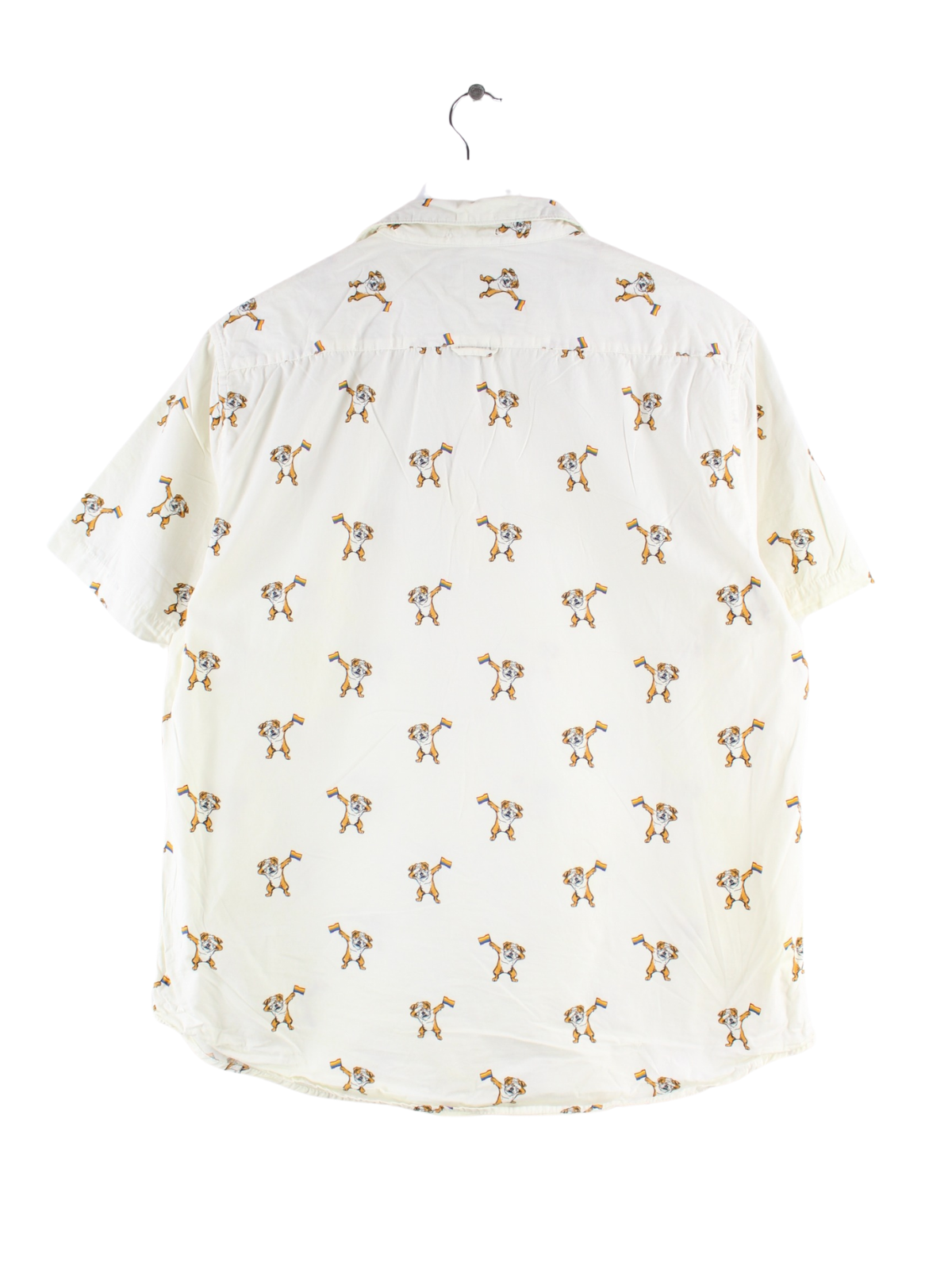 Vintage Dog Rainbow Pattern Short Sleeve Shirt Beige XL