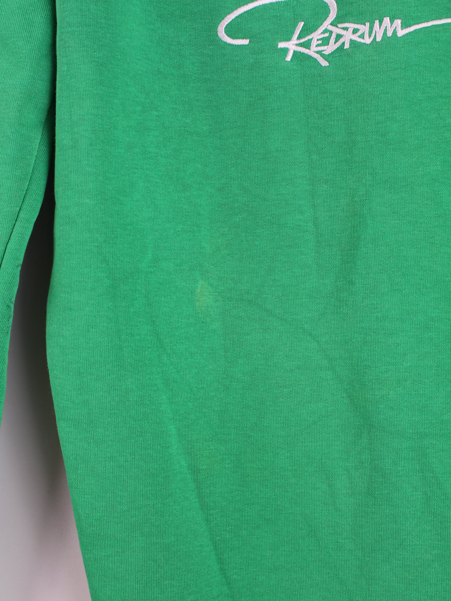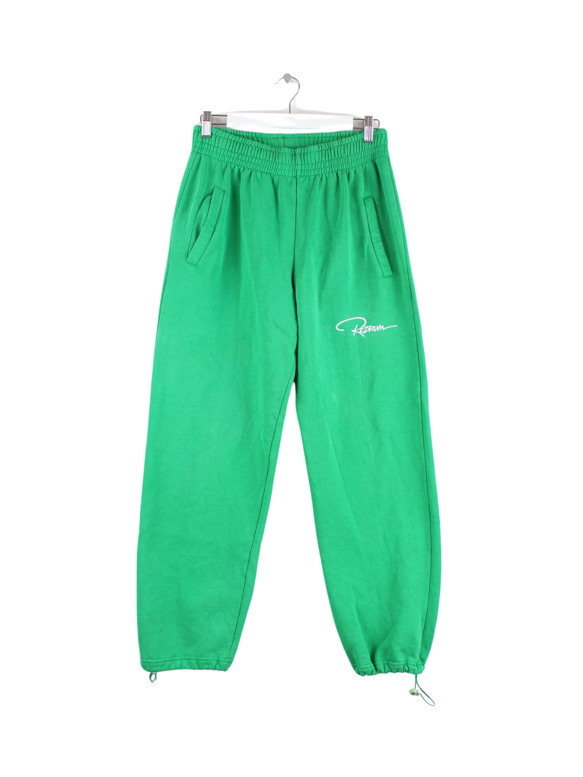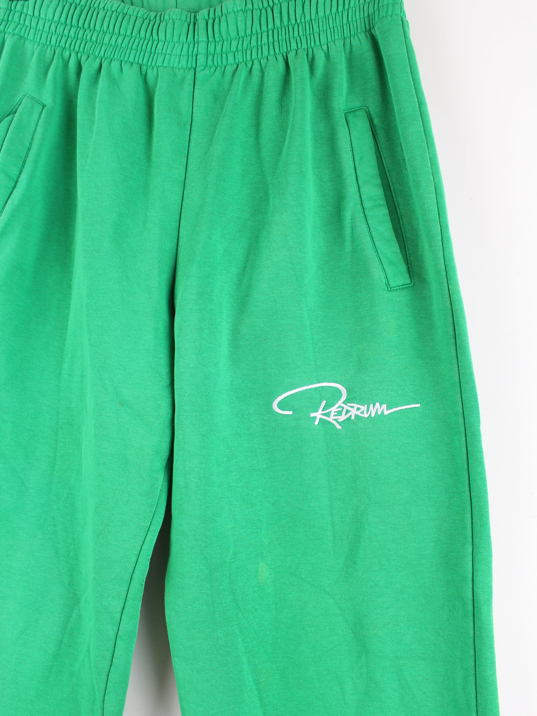 Redrum jogging pants with embroidered motifs in size XS. They are made from a cotton blend and are available in green.