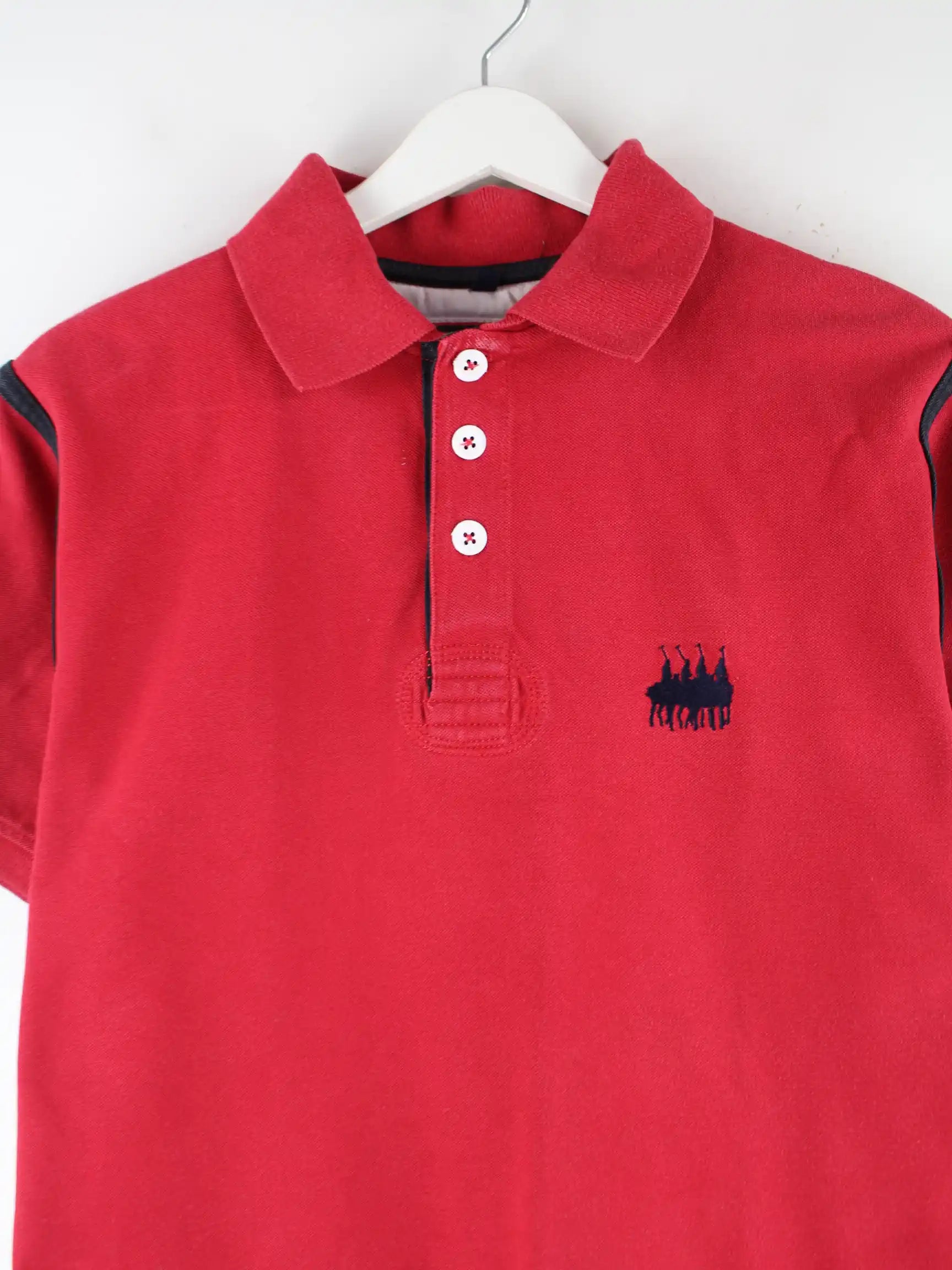 Vintage Poloshirt mit Stickereien in Größe M. Es ist aus Baumwolle angefertigt und in Rot zu bekommen.