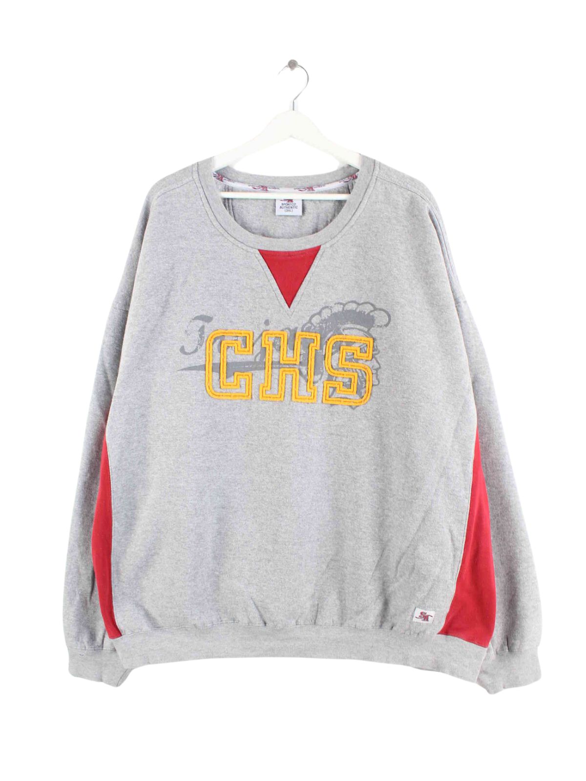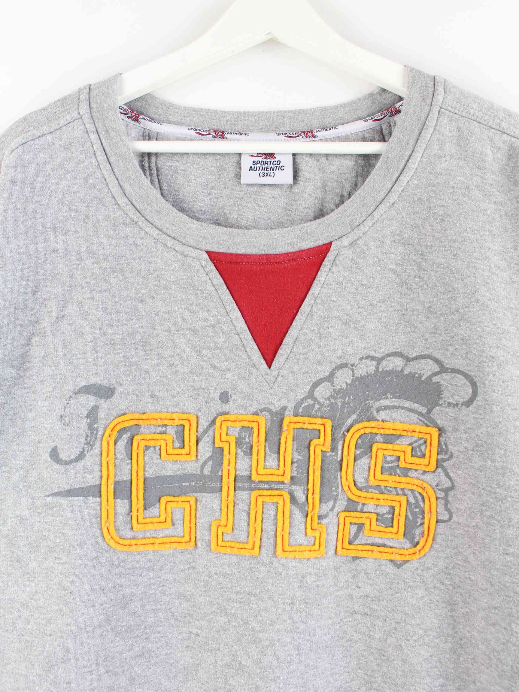 Vintage sweater with embroidered logo in size 3XL. It is made from a cotton blend and is available in gray.