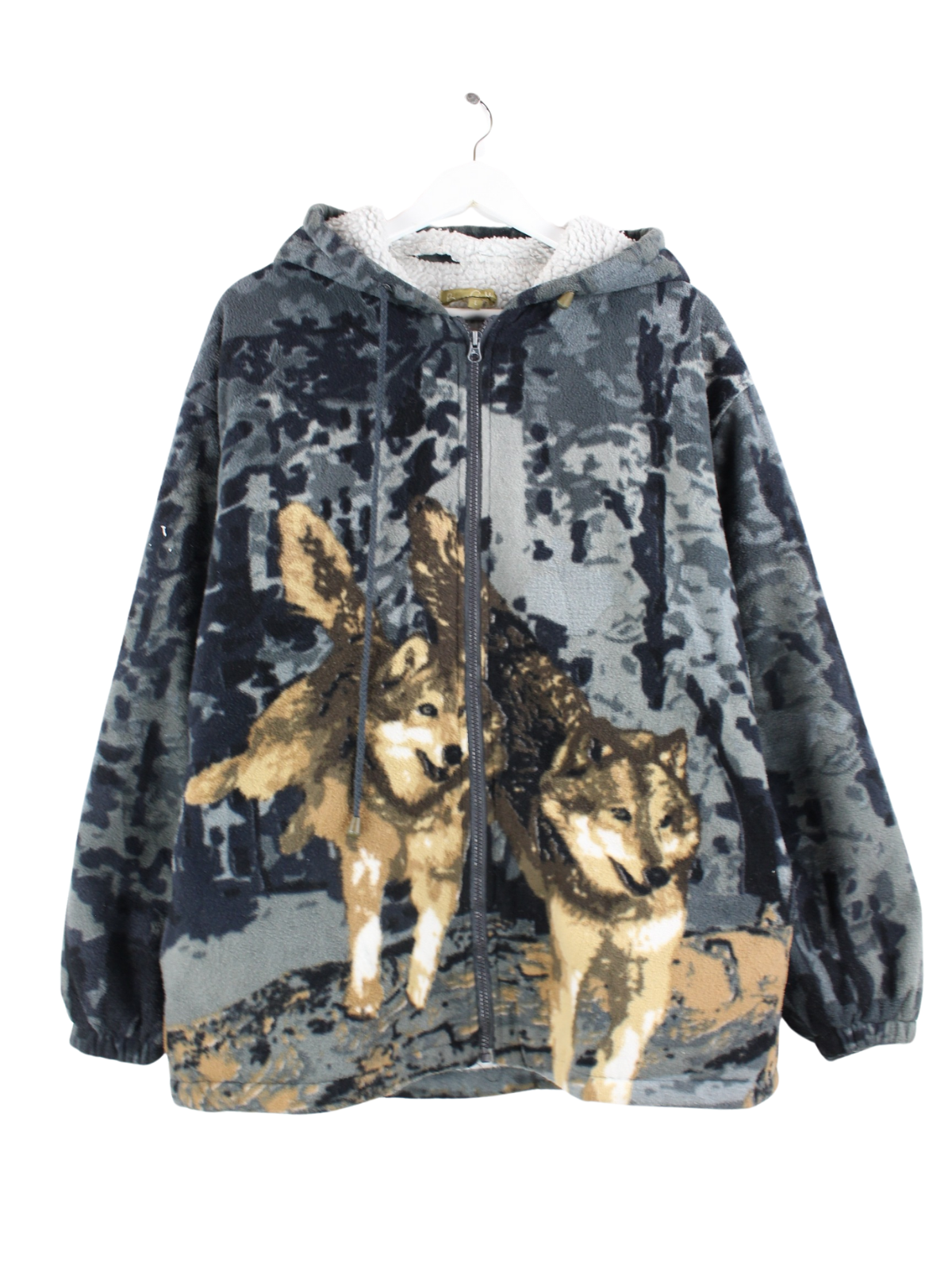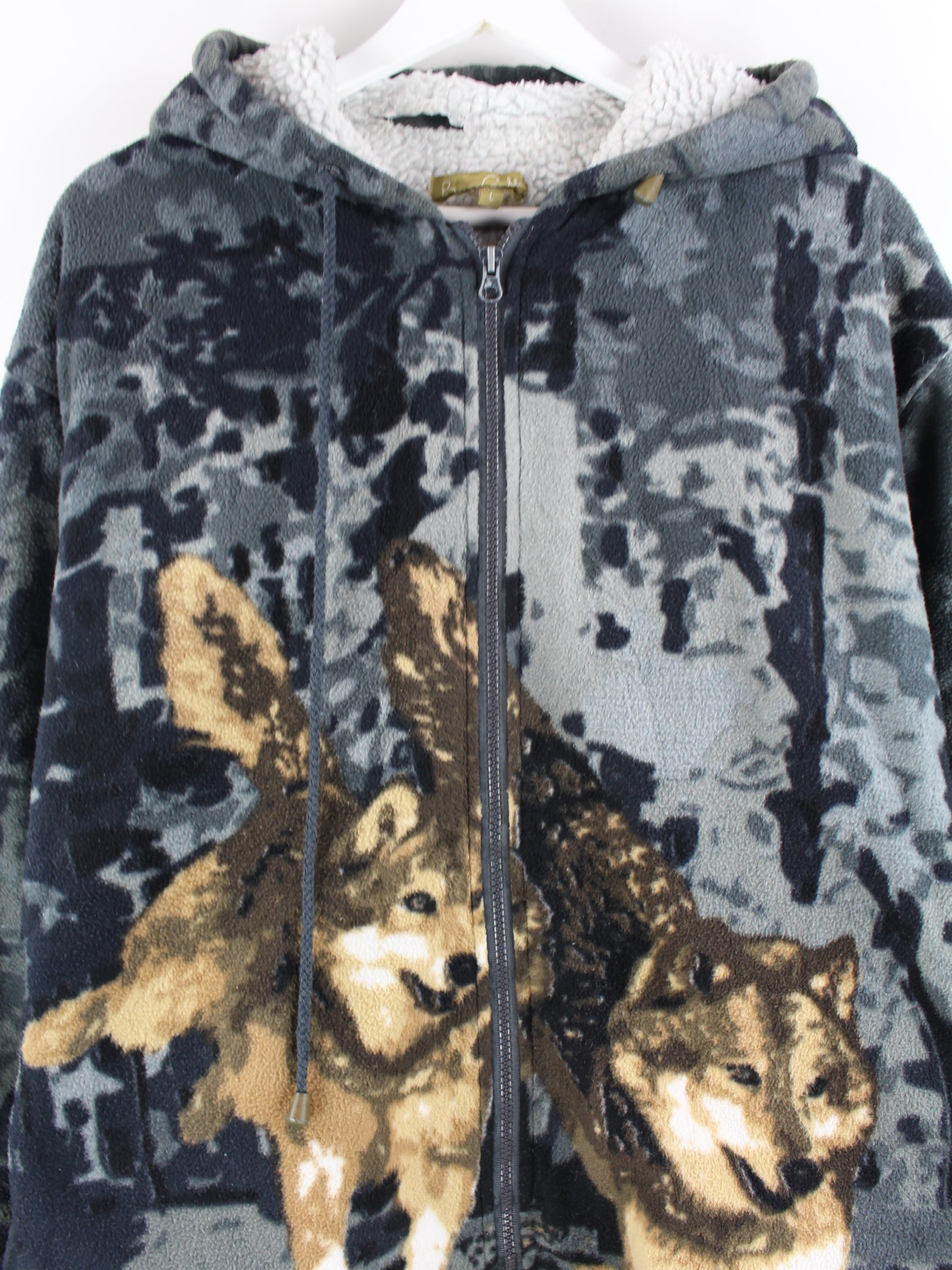 Vintage Lined Wolf Fleece Zip Hoodie Gray L