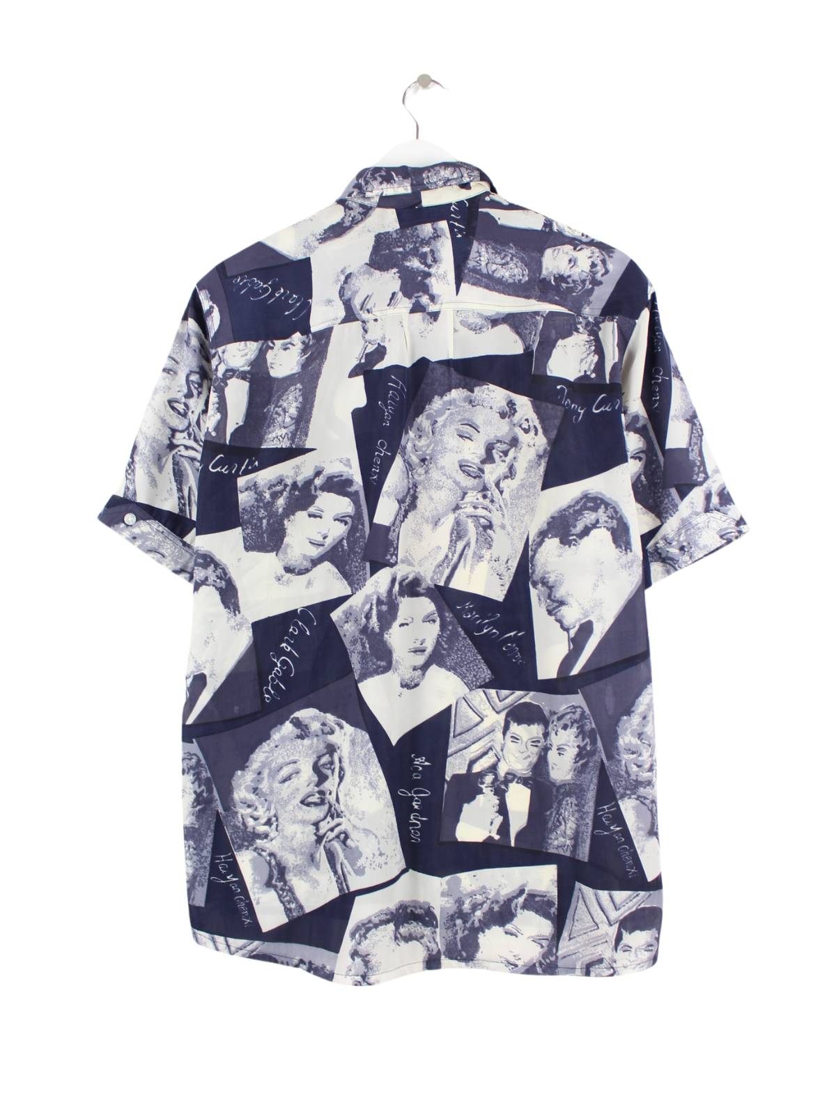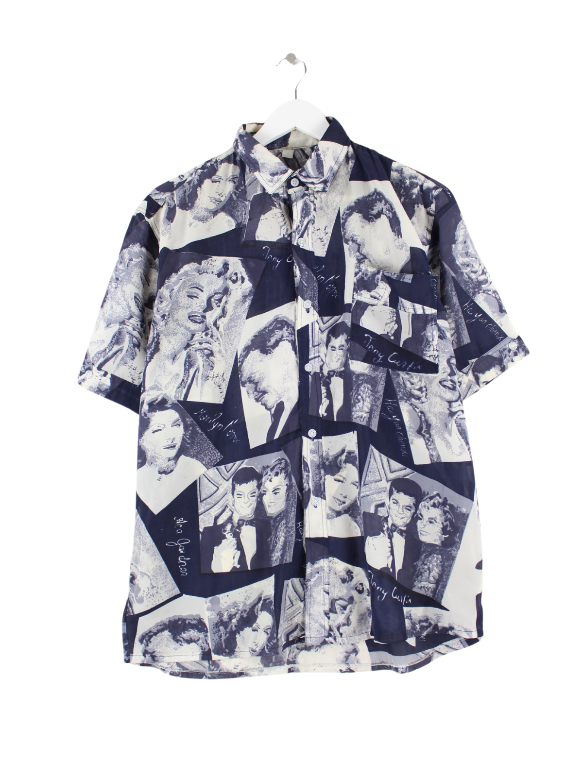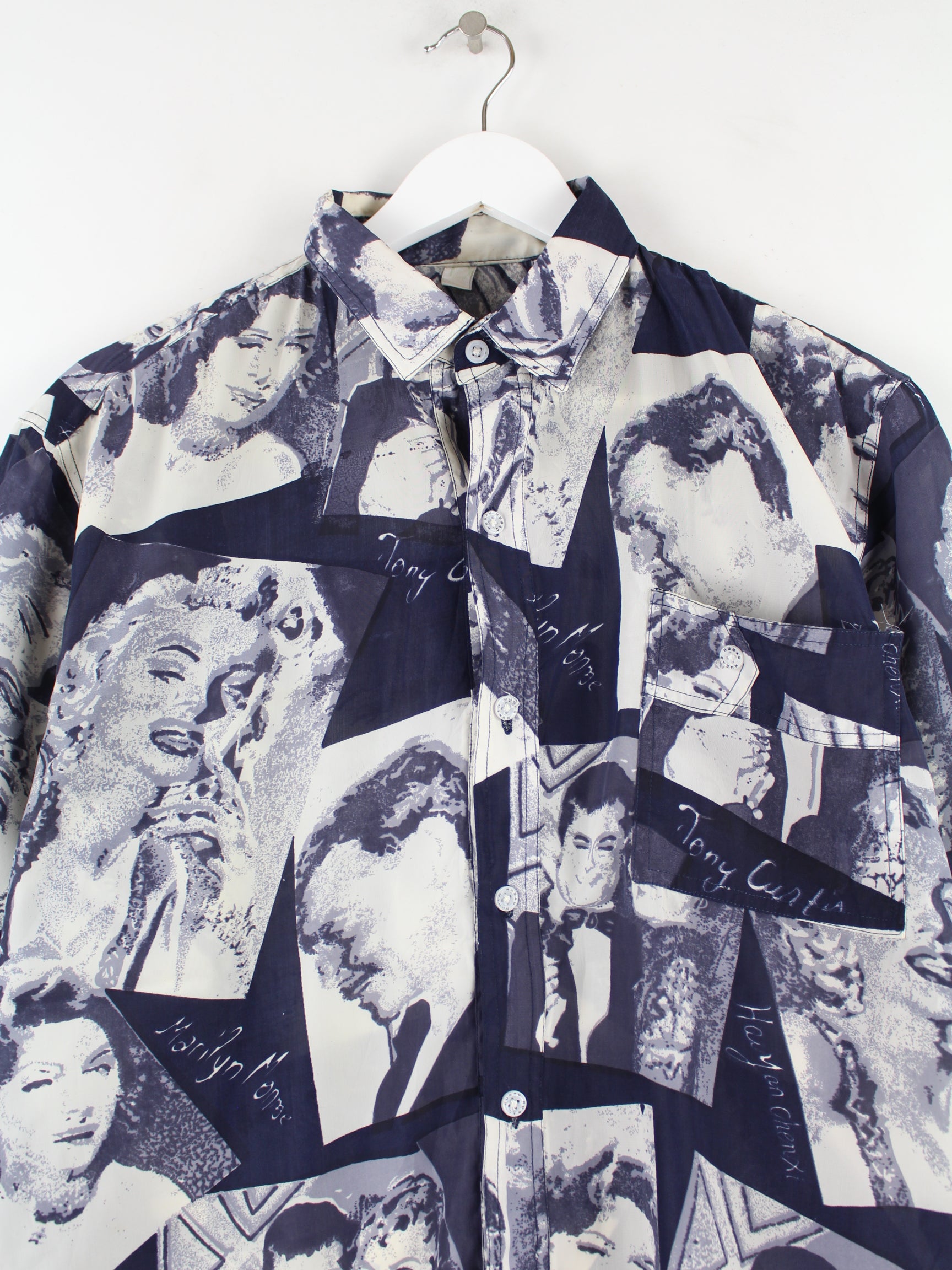 Blue vintage casual shirt in size L. It is made of synthetic material and is in good condition.