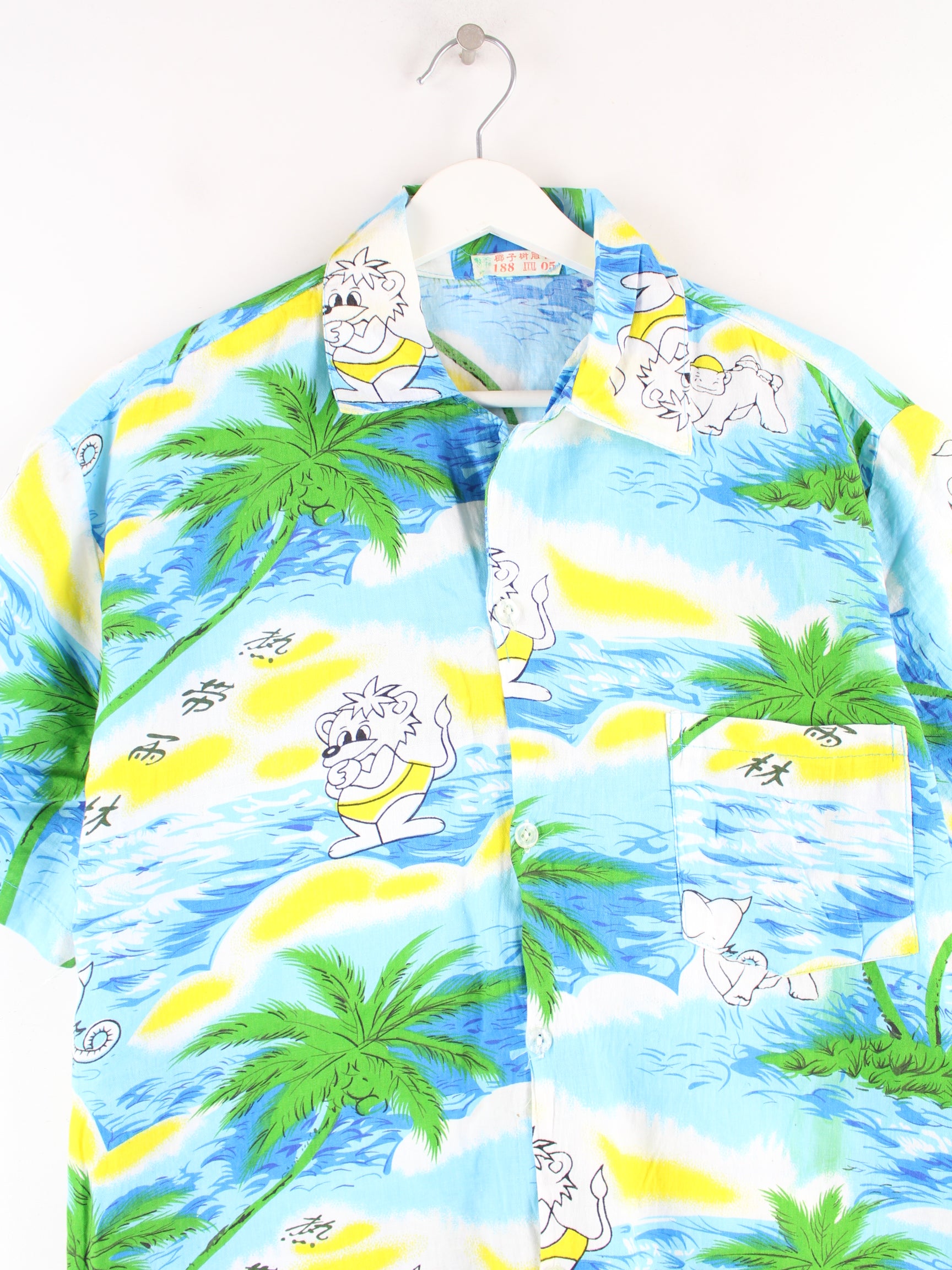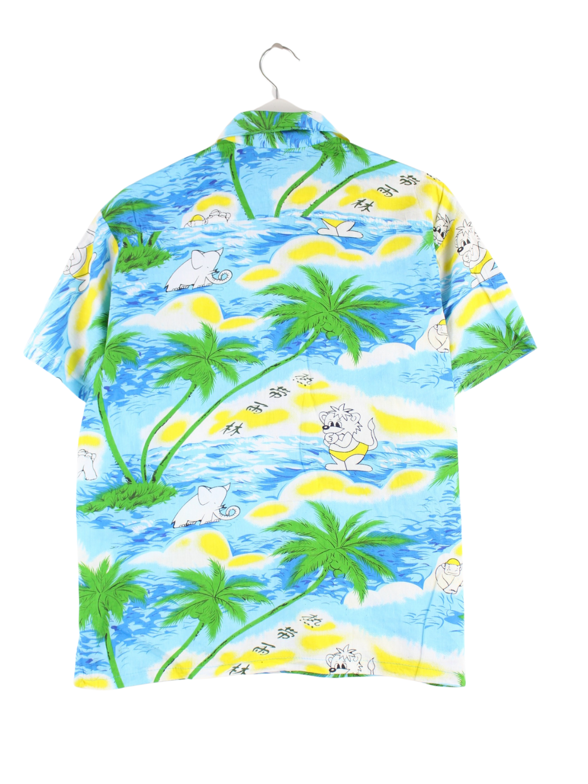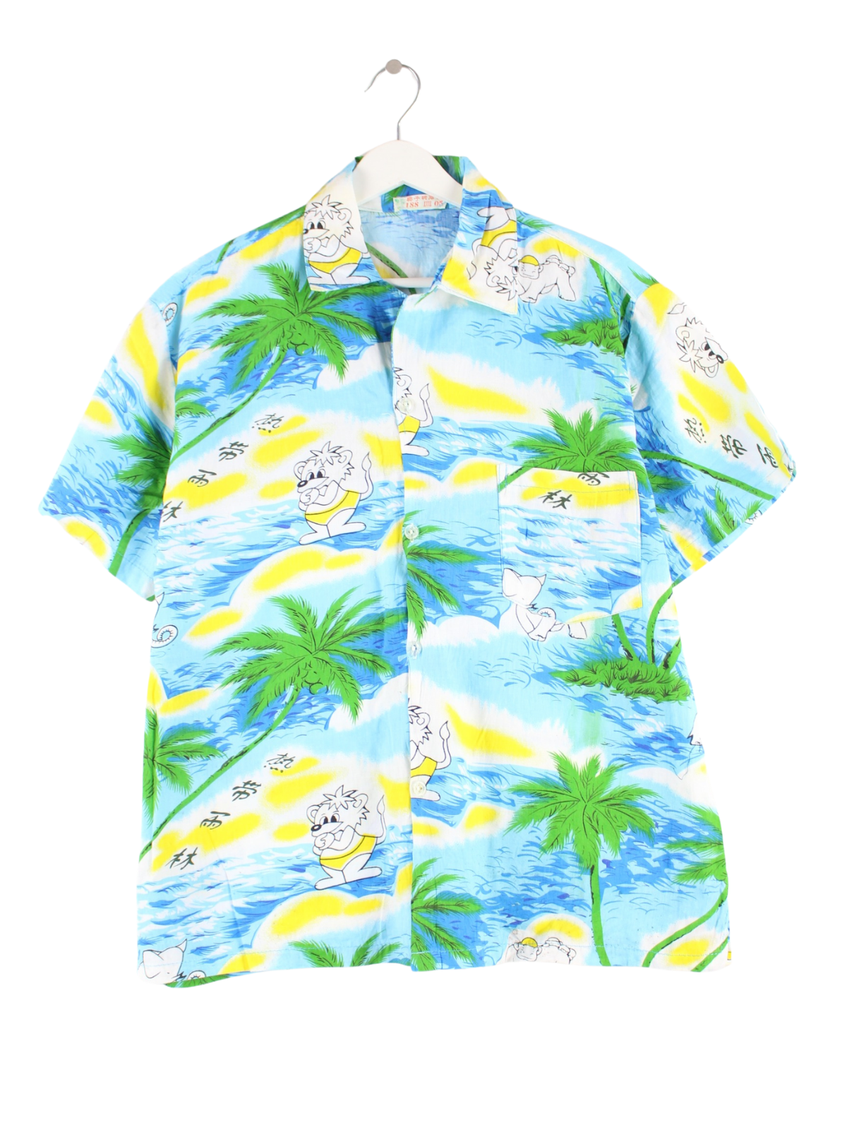 Blue vintage casual shirt in size L. It is made of a cotton blend and is available in good condition.