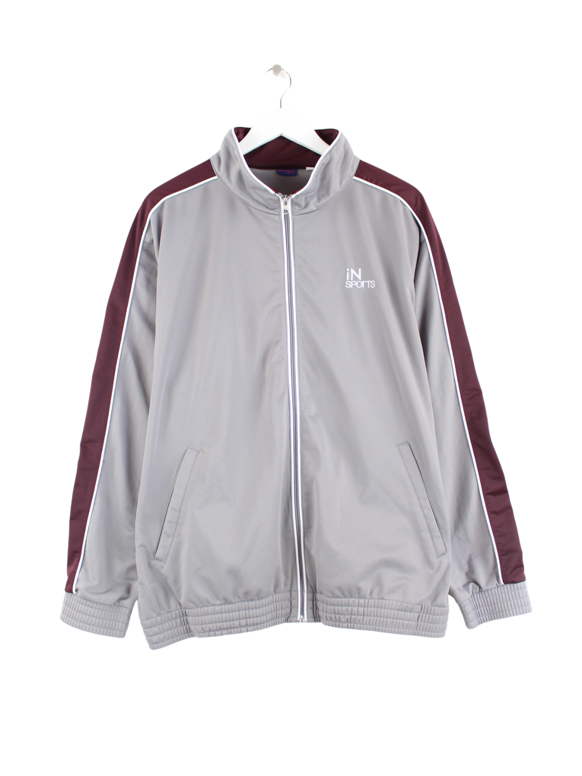 Grey vintage tracksuit jacket in size XL. It is made of synthetic material and in very good condition.