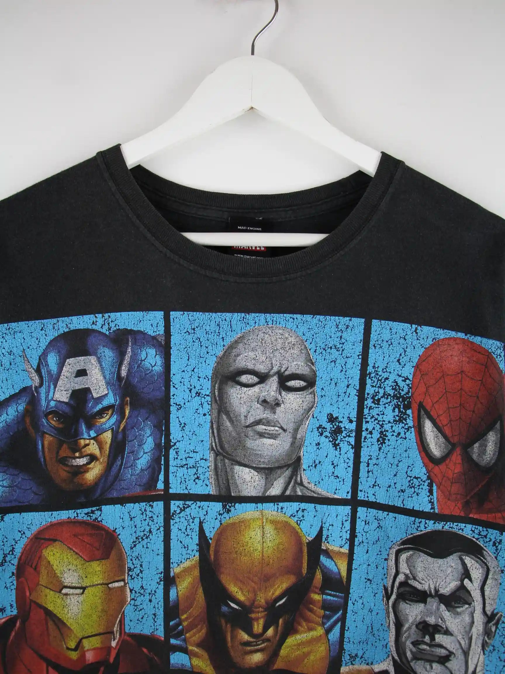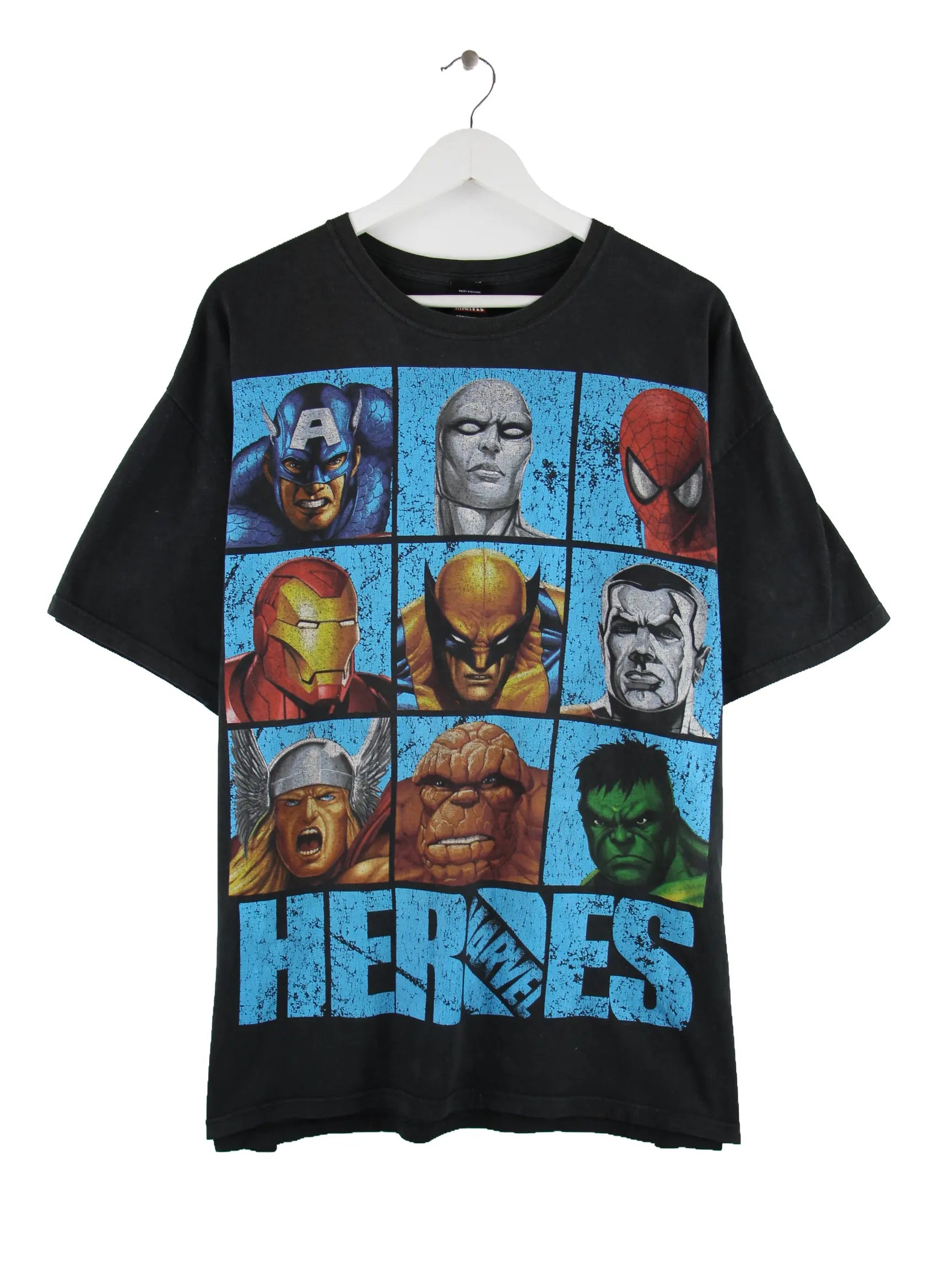 Vintage Marvel Heroes Print T-Shirt Schwarz XXL