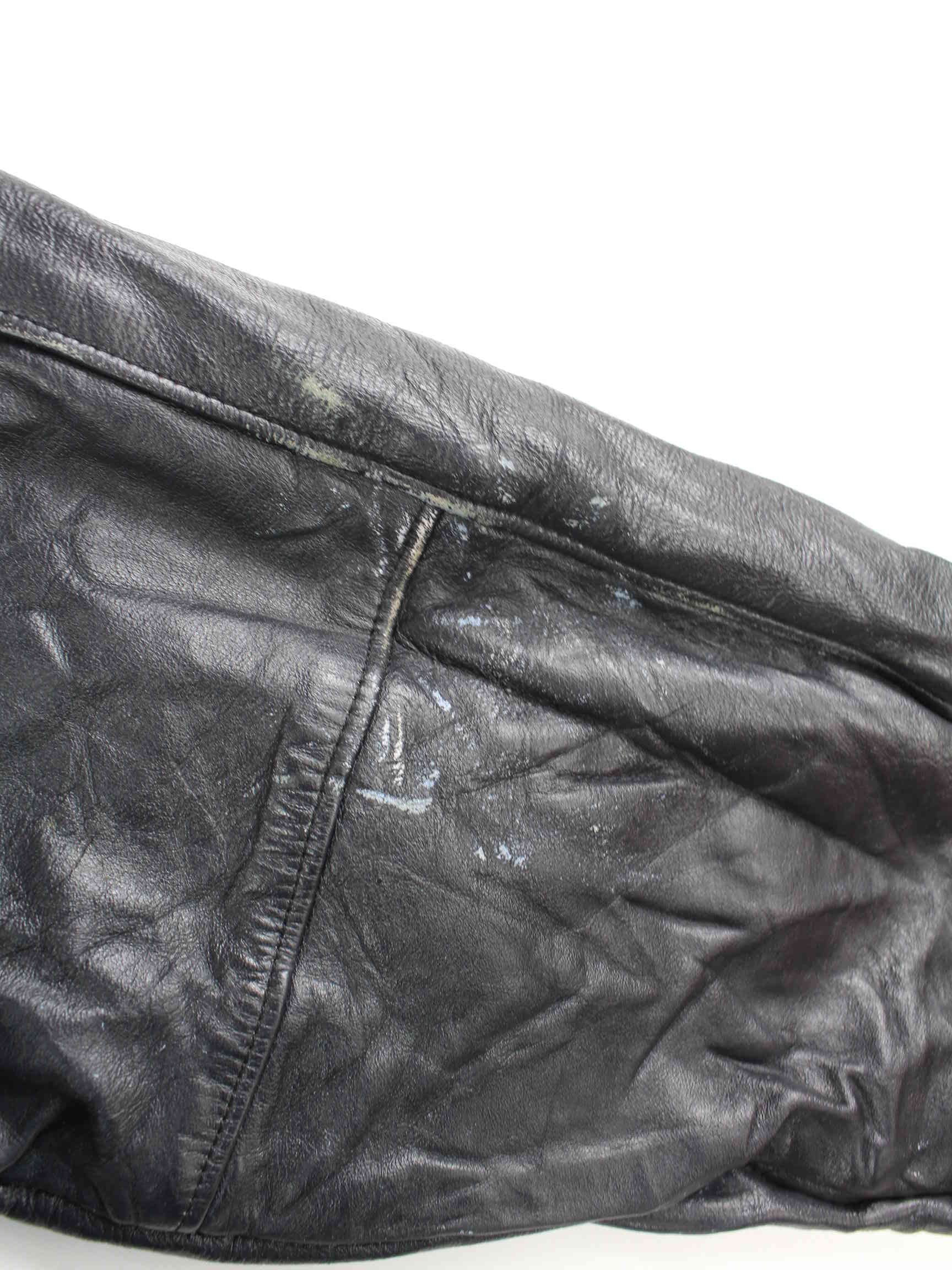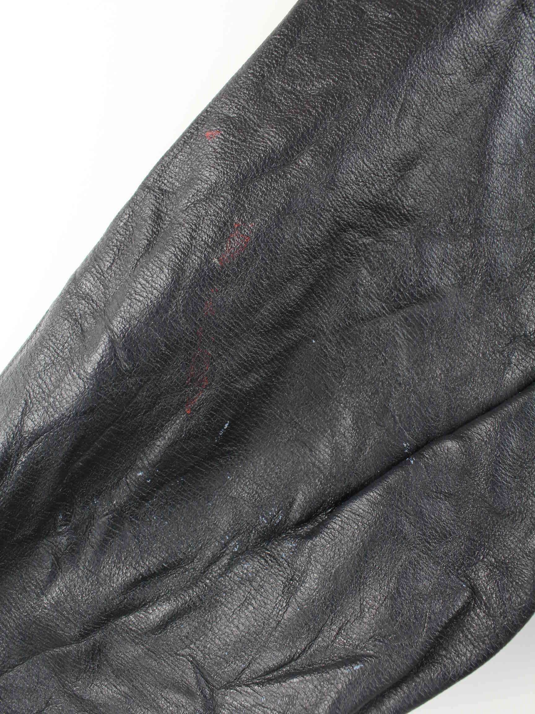 Defects: Leather on the sleeves shows wear and a few small stains (see pictures)