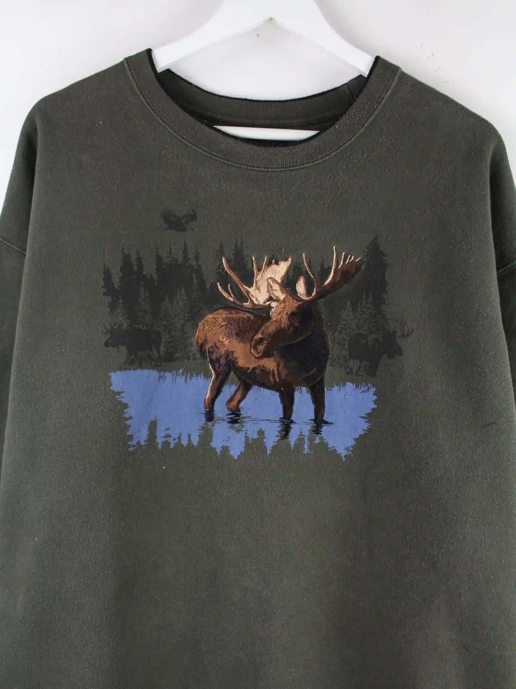 Vintage Outdoor Elk Embroidered Sweater Grün XXL