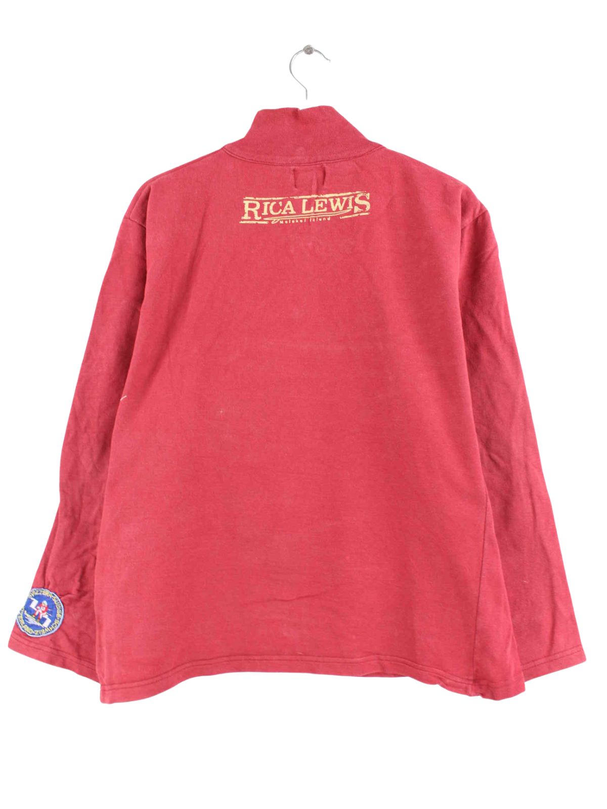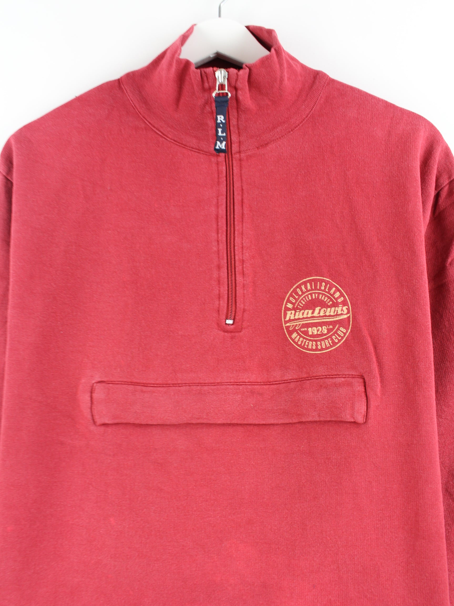 Vintage sweater with half zip in size M. It is made from a cotton blend and is available in red. With a chic undefined print.