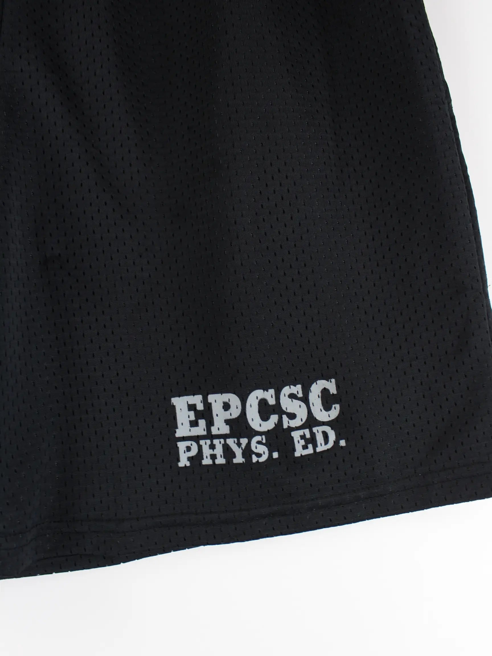 Vintage Shorts in Größe L. Sie sind aus Synthetik gefertigt und in Schwarz zu haben. Mit Tolleem undefined Print.