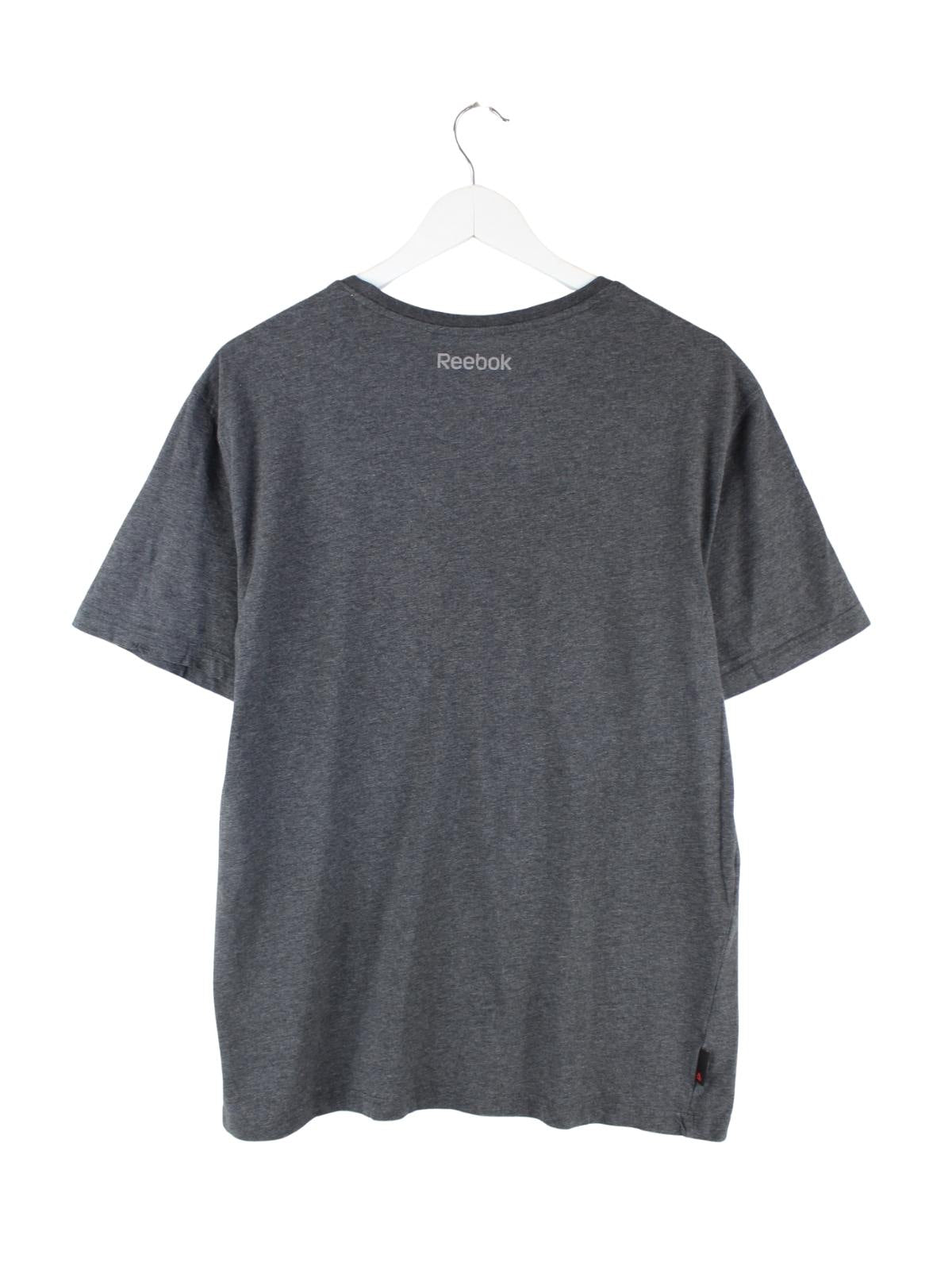 Reebok T-Shirt in Größe L. Es ist aus Baumwolle produziert und in Grau im Bestand. Mit chiquem Print.