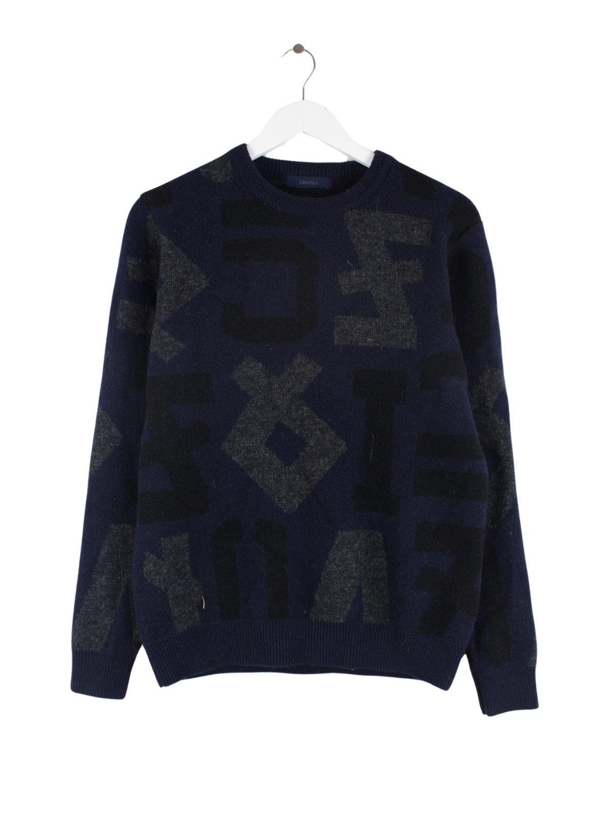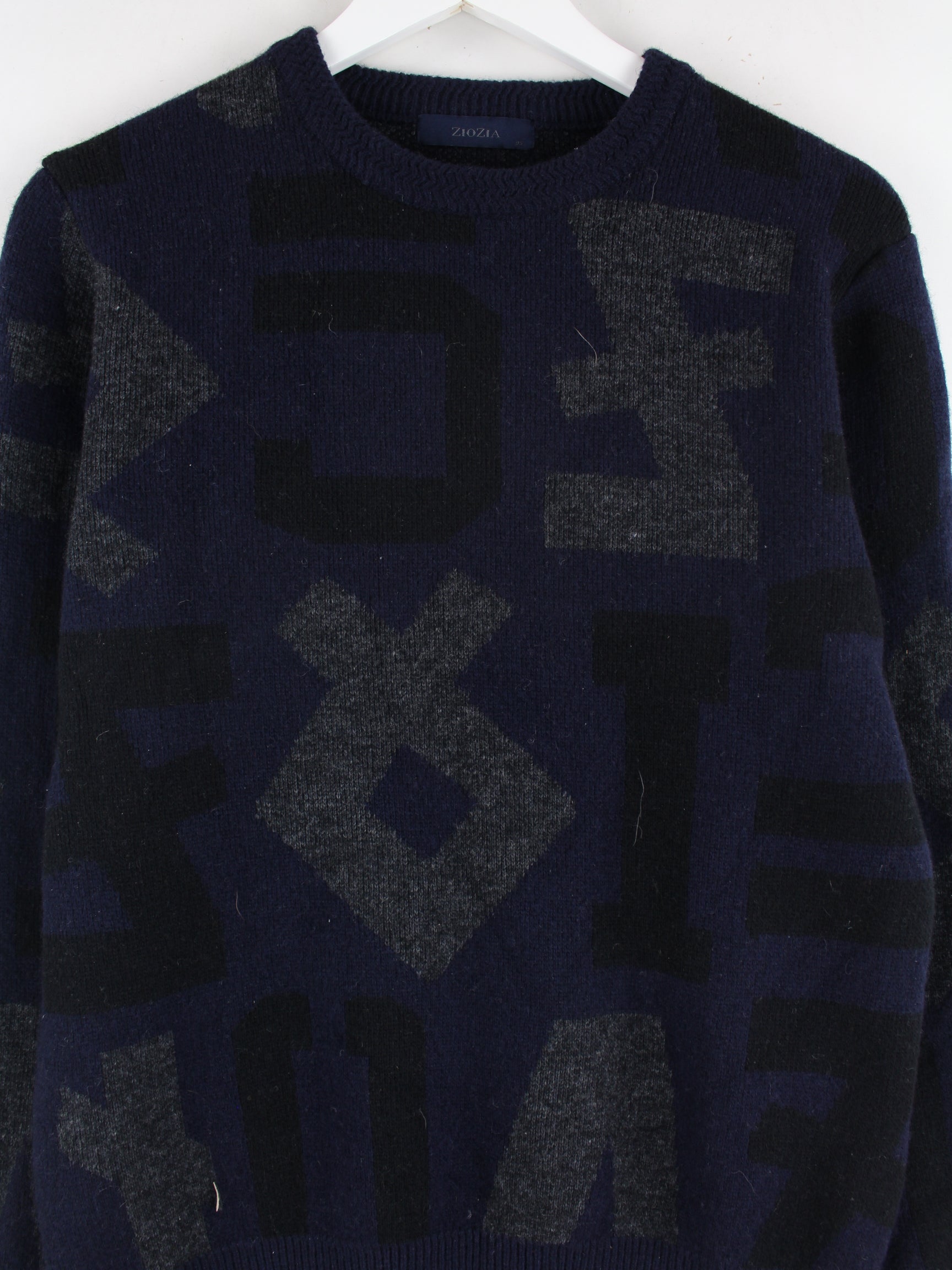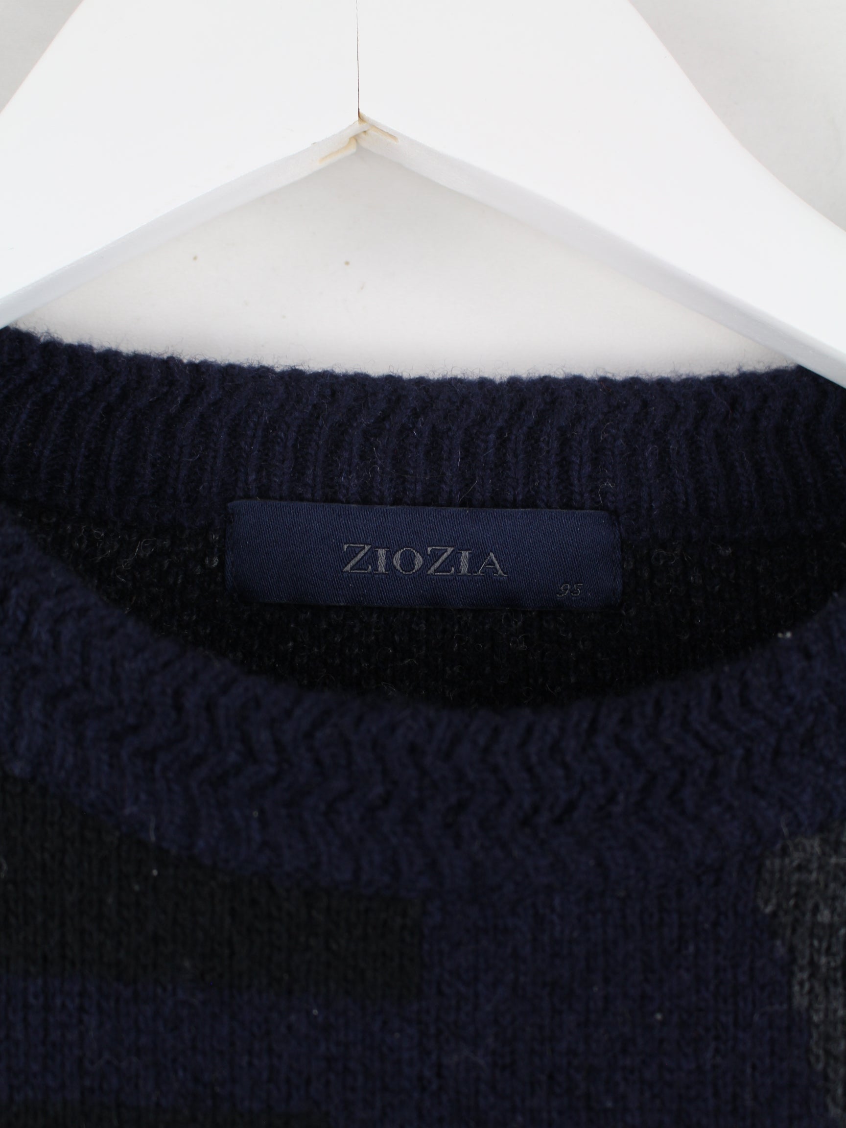 Vintage Pullover in Größe M. Er ist aus einer Baumwollmischung gemacht und in Blau zu haben.