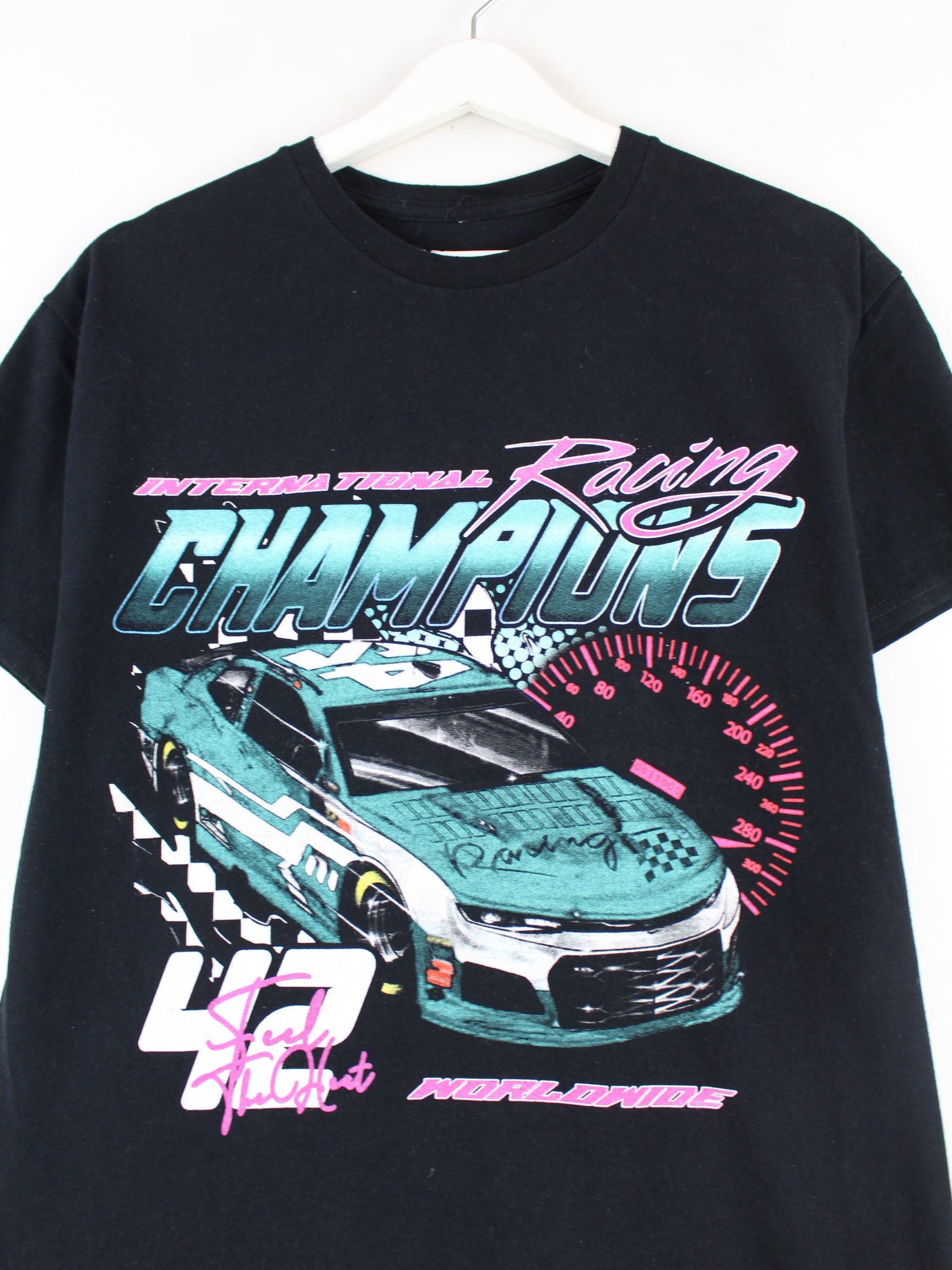 Black vintage T-shirt in size M. It is made from a cotton blend and is in very good condition. With a rare racing print.