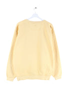 Gelber Vintage Sweater mit Stickereien in Größe S. Er ist aus einer Baumwollmischung angefertigt und in sehr gutem Zustand lieferbar.