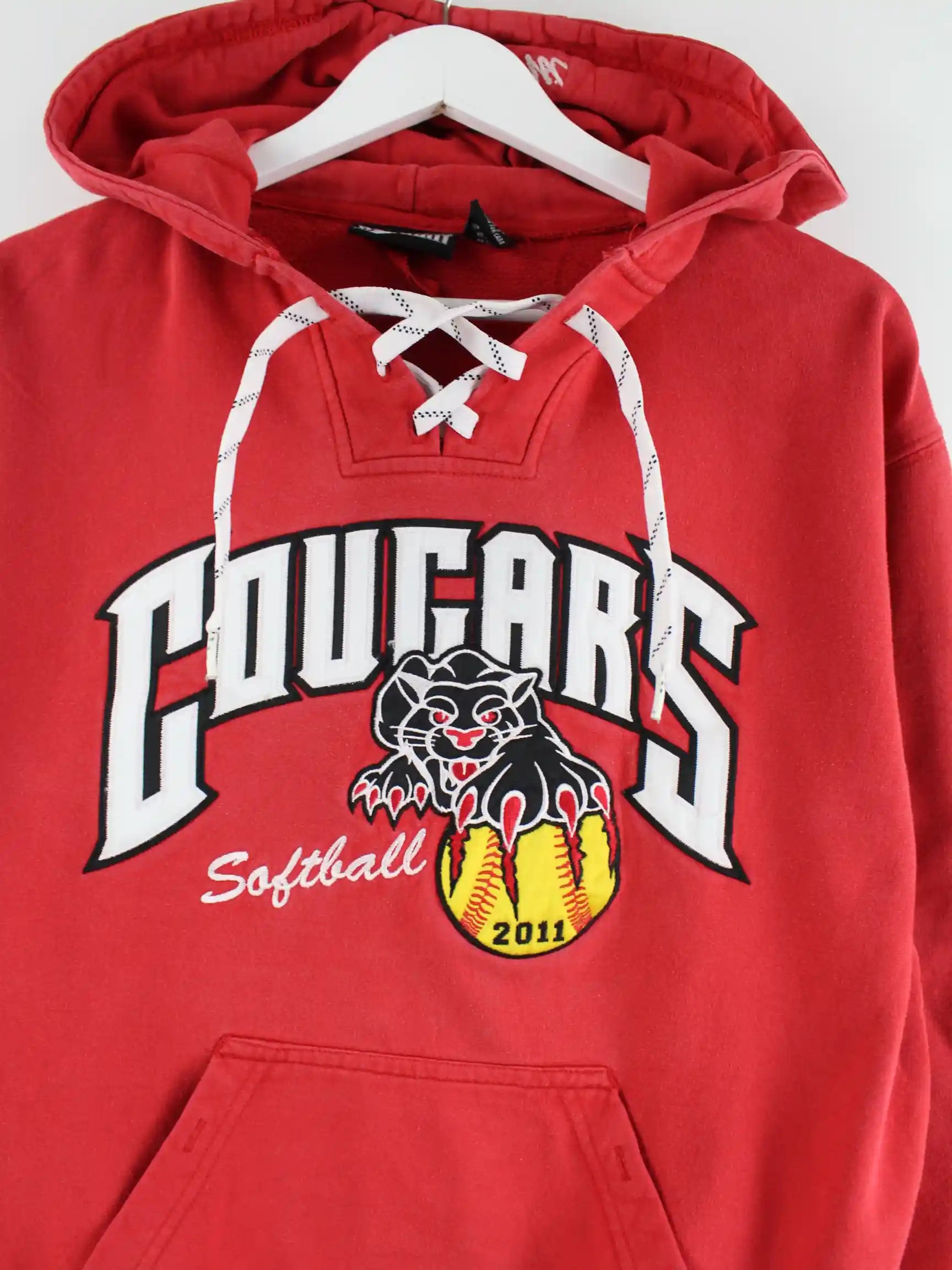 Vintage Softball Cougars Embroidered Hoodie Rot S