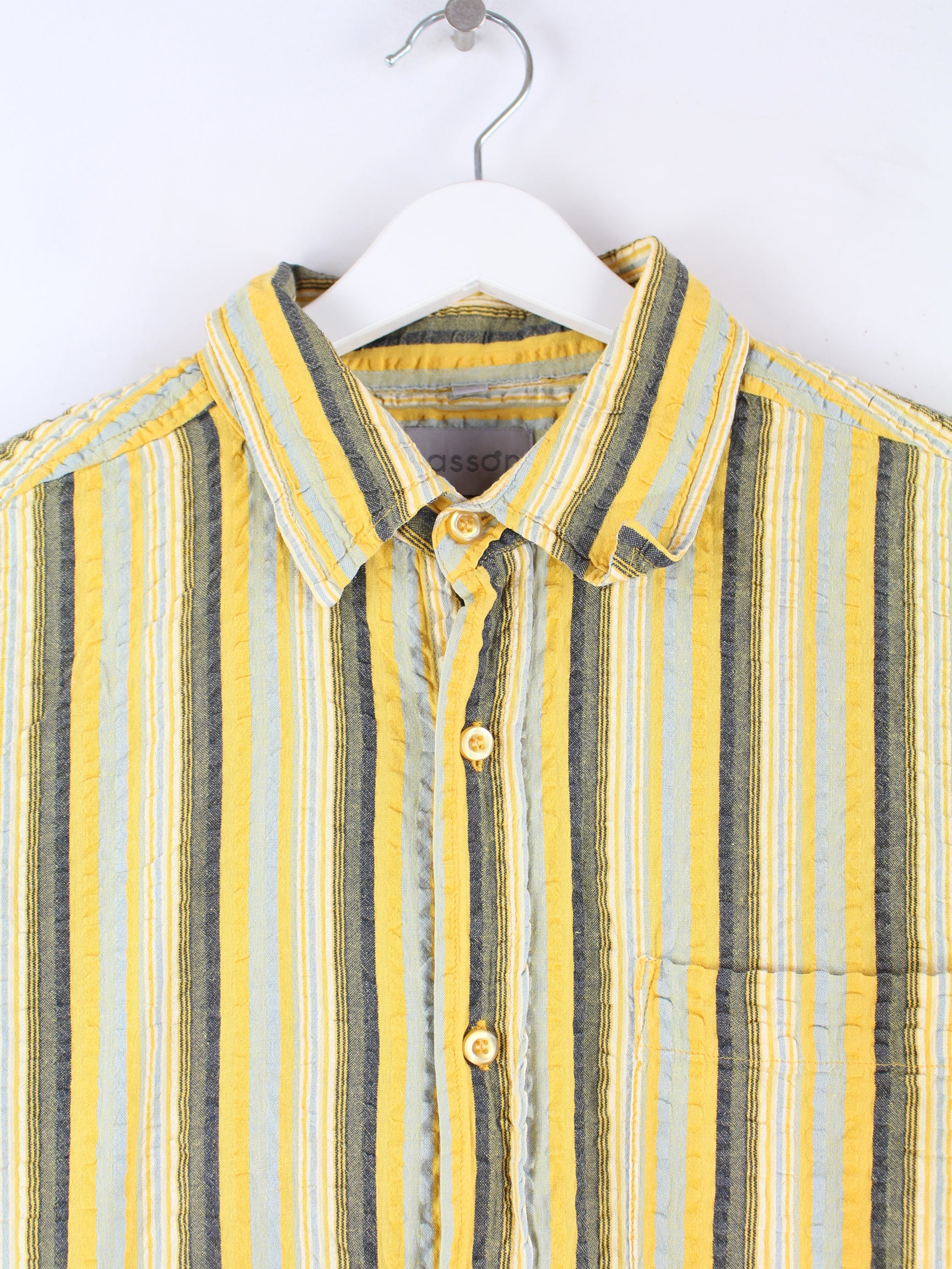 Yellow vintage casual shirt in size L. It is made of cotton and is in very good condition.
