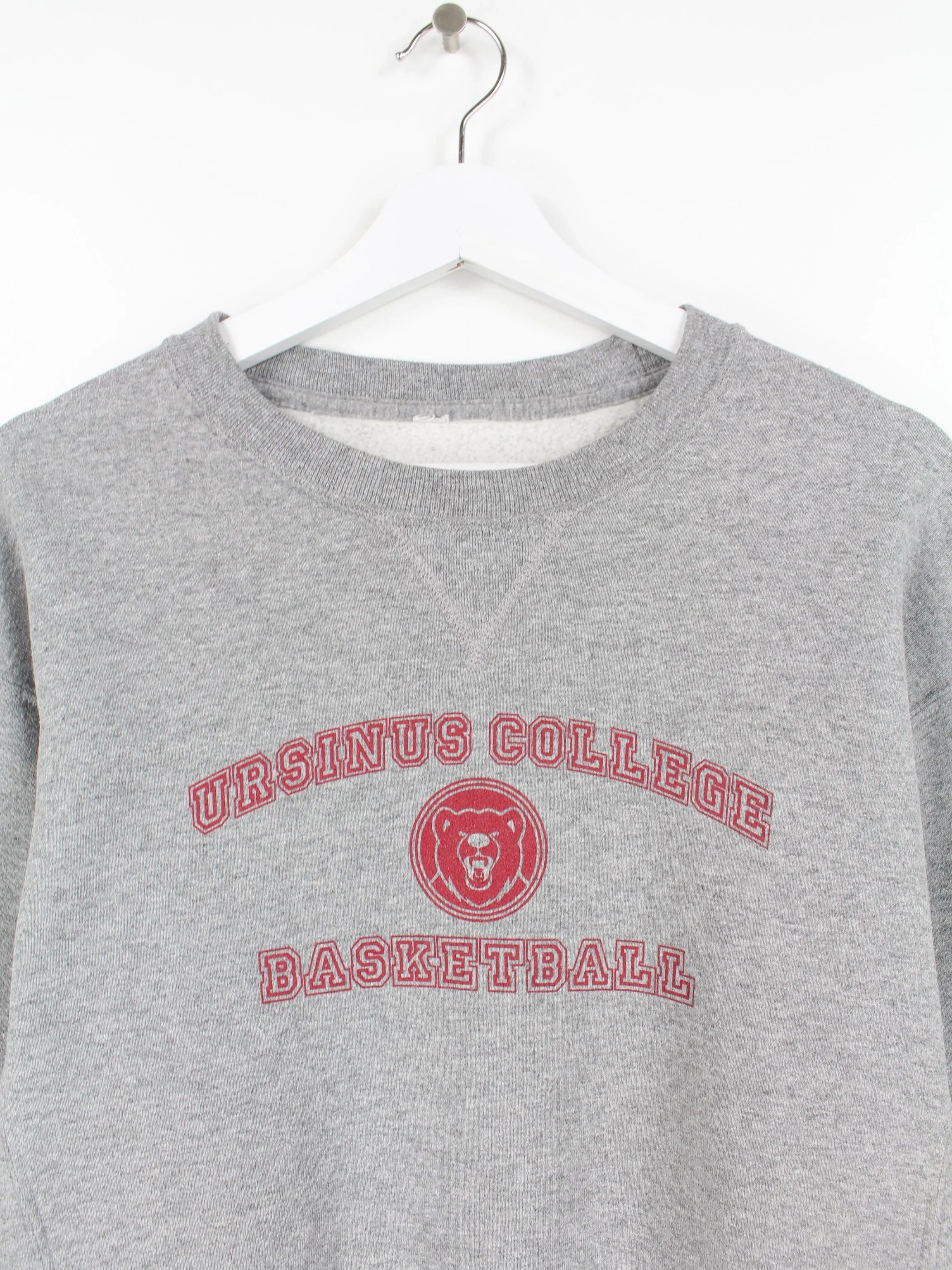 Gray sweater with a large Ursinus College Basketball print.