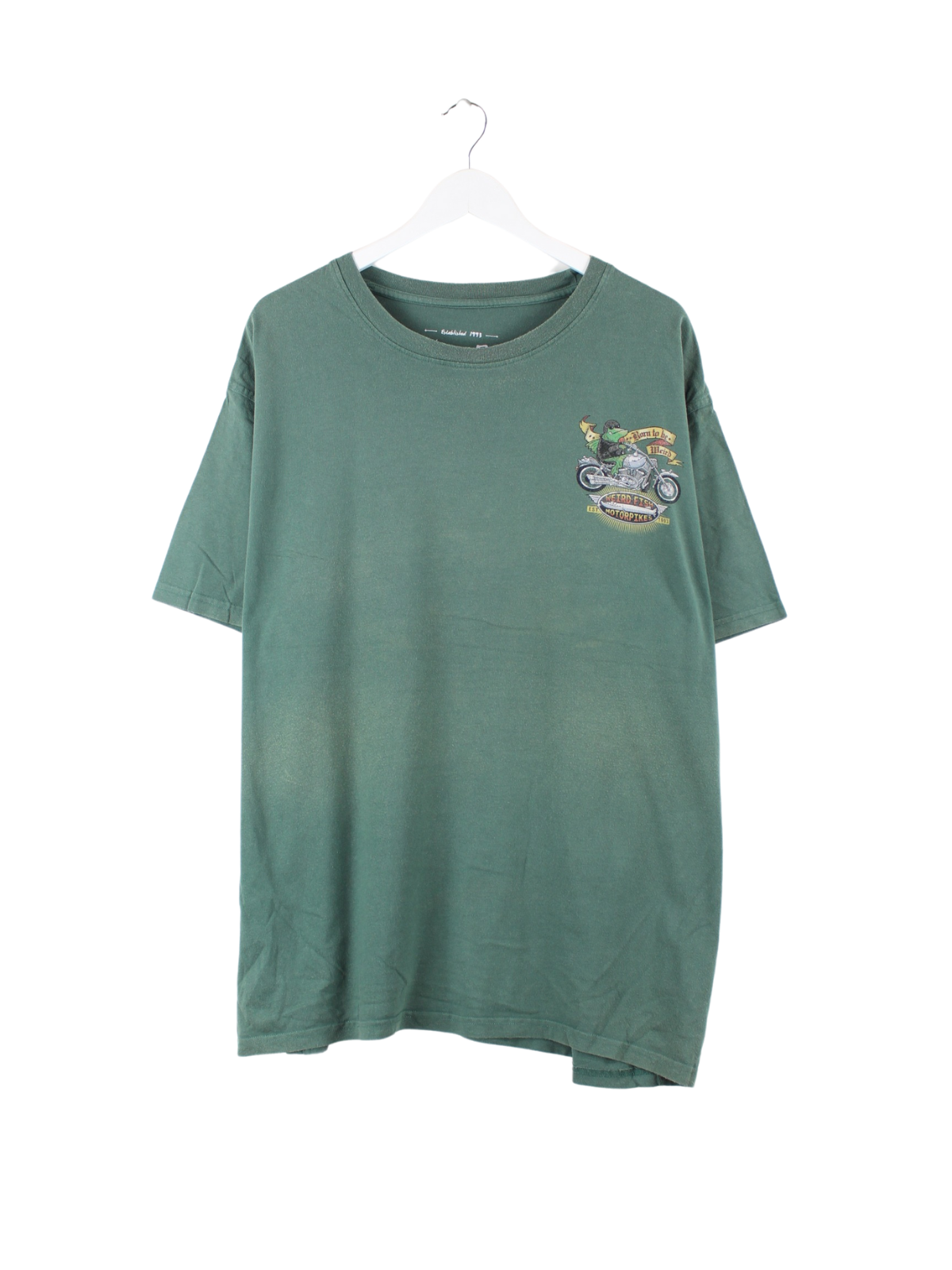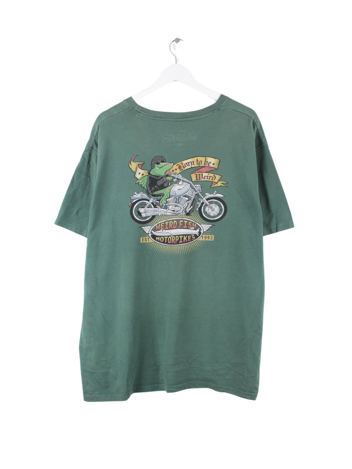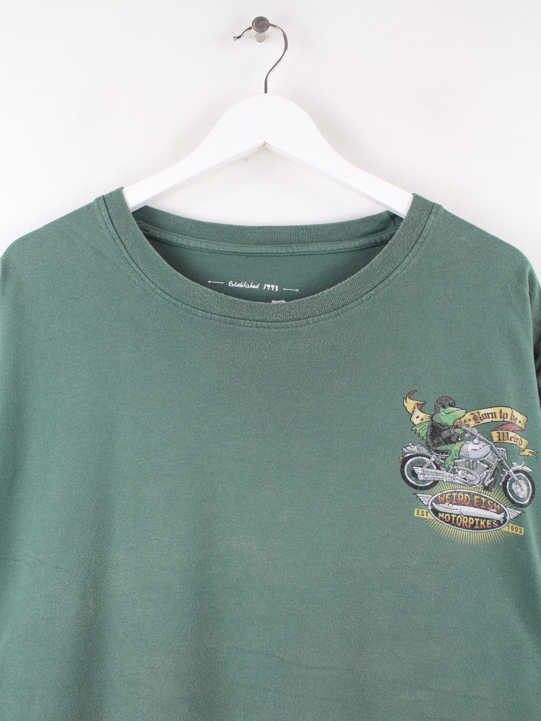 Vintage T-shirt in size 3XL. It is made of cotton and comes in green. With a great fish print.