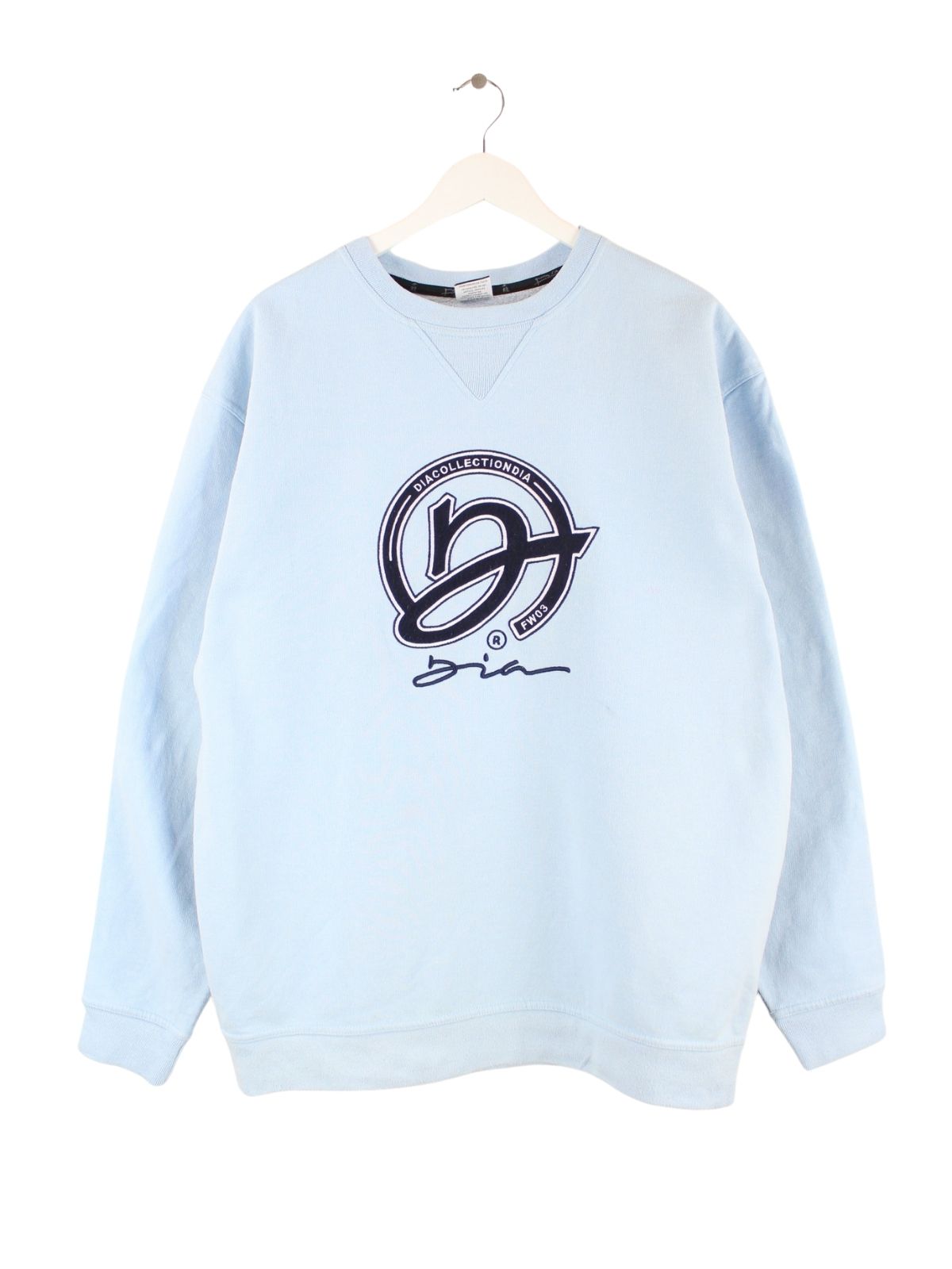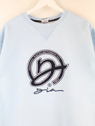Vintage Sweater mit gesticktem Logo in Größe XL aus Anfang der 2000'er. Er ist aus einer Baumwollmischung produziert und in Blau lieferbar.