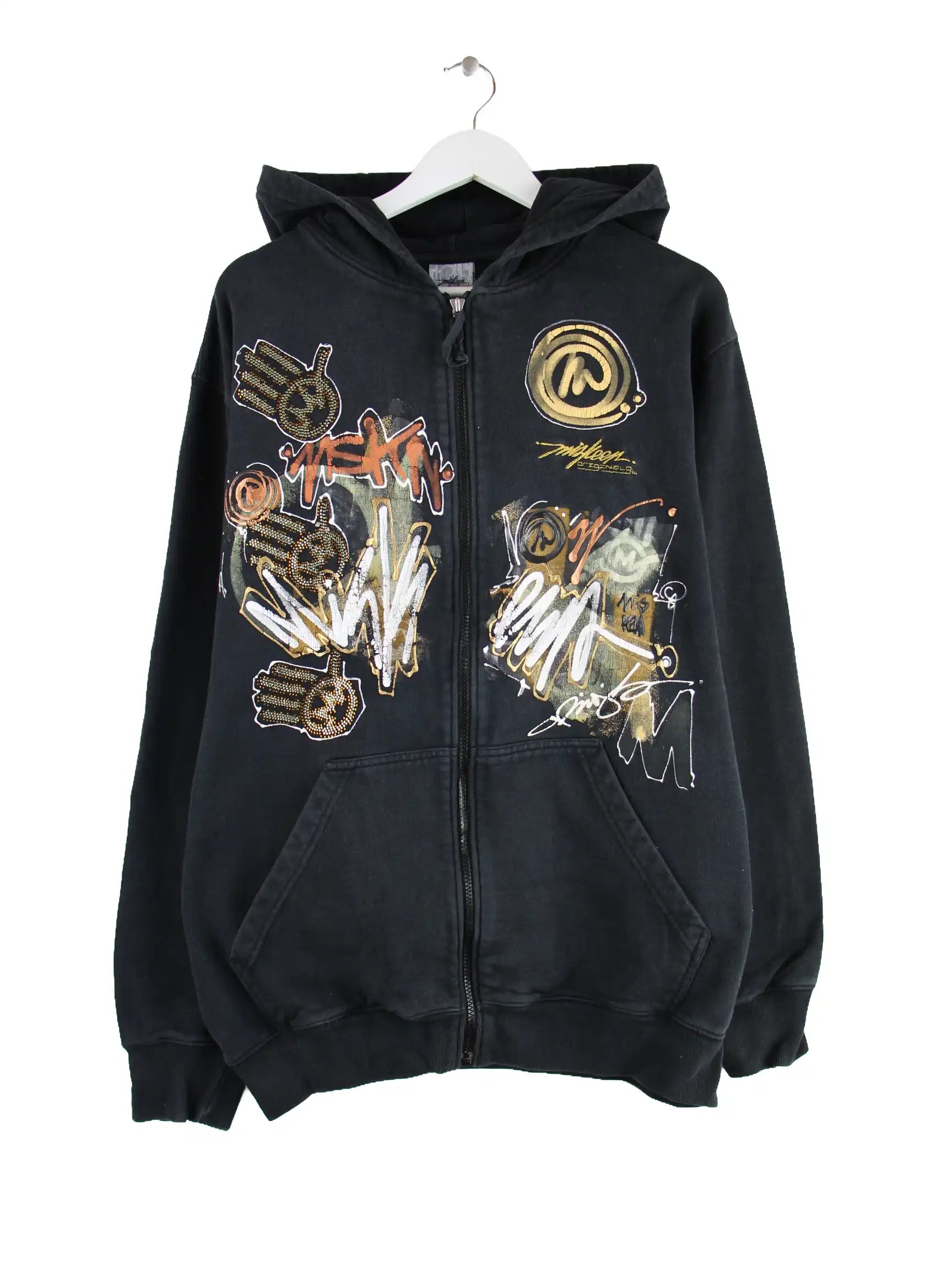 Vintage y2k Painted Zip Hoodie Schwarz XL