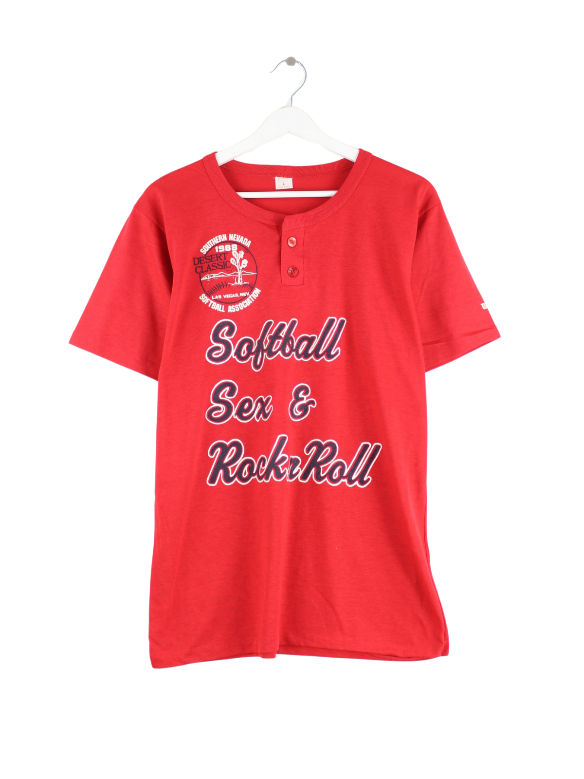 Red T-shirt from the Wilson brand from the 80's in size L. It is made of cotton and is in very good condition. With a chic softball print.