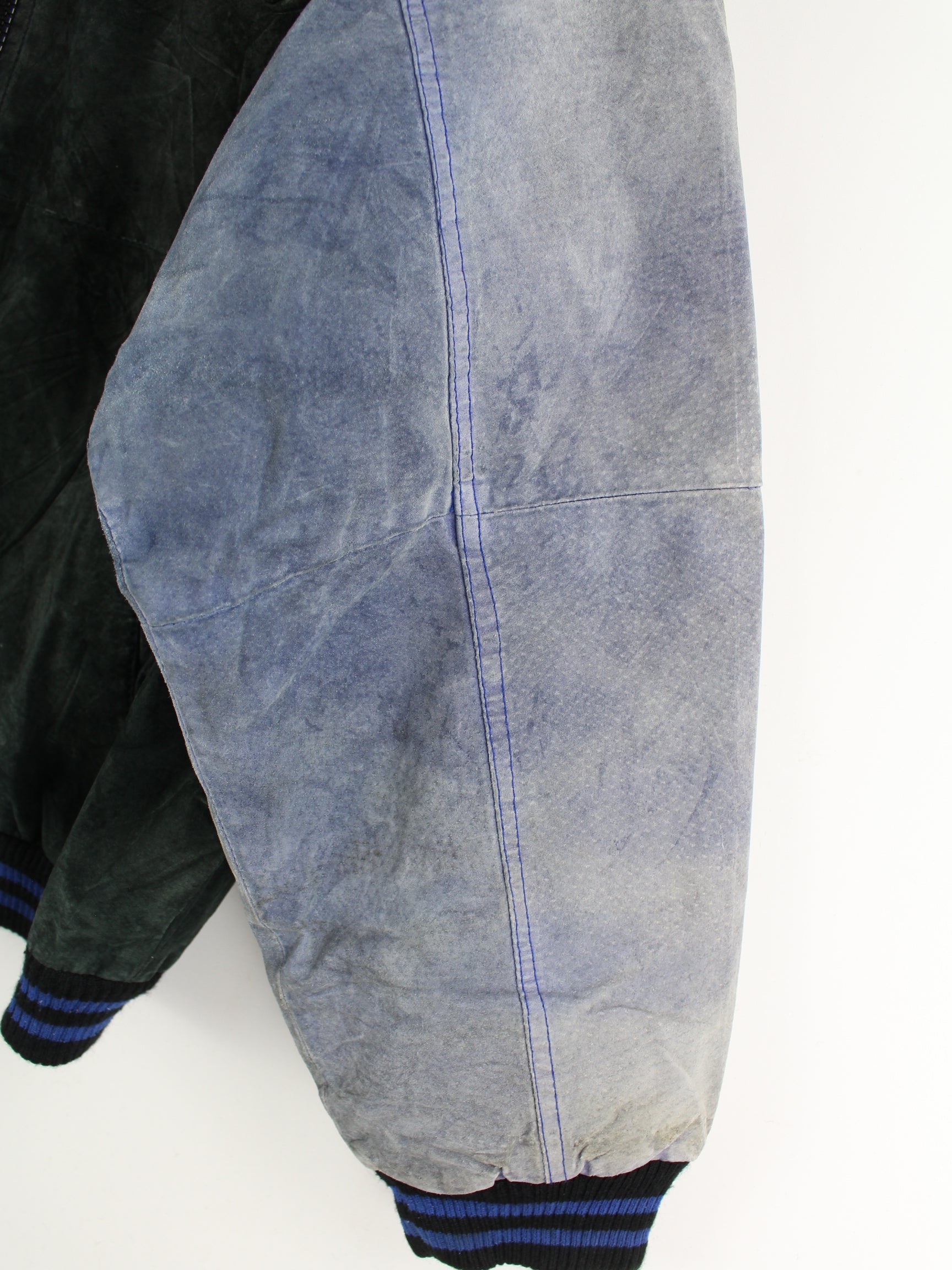 Jacke von Wilson mit gestickten Motiven in Größe L aus den 90'ern. Sie ist aus Leder produziert und in Schwarz in Stock.