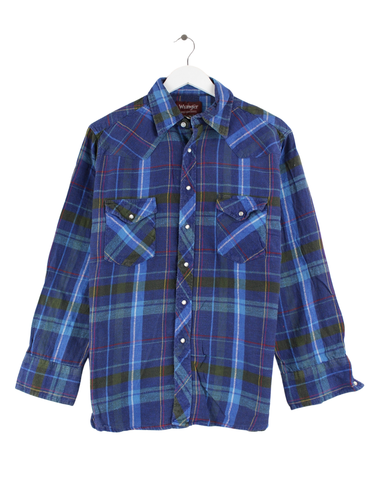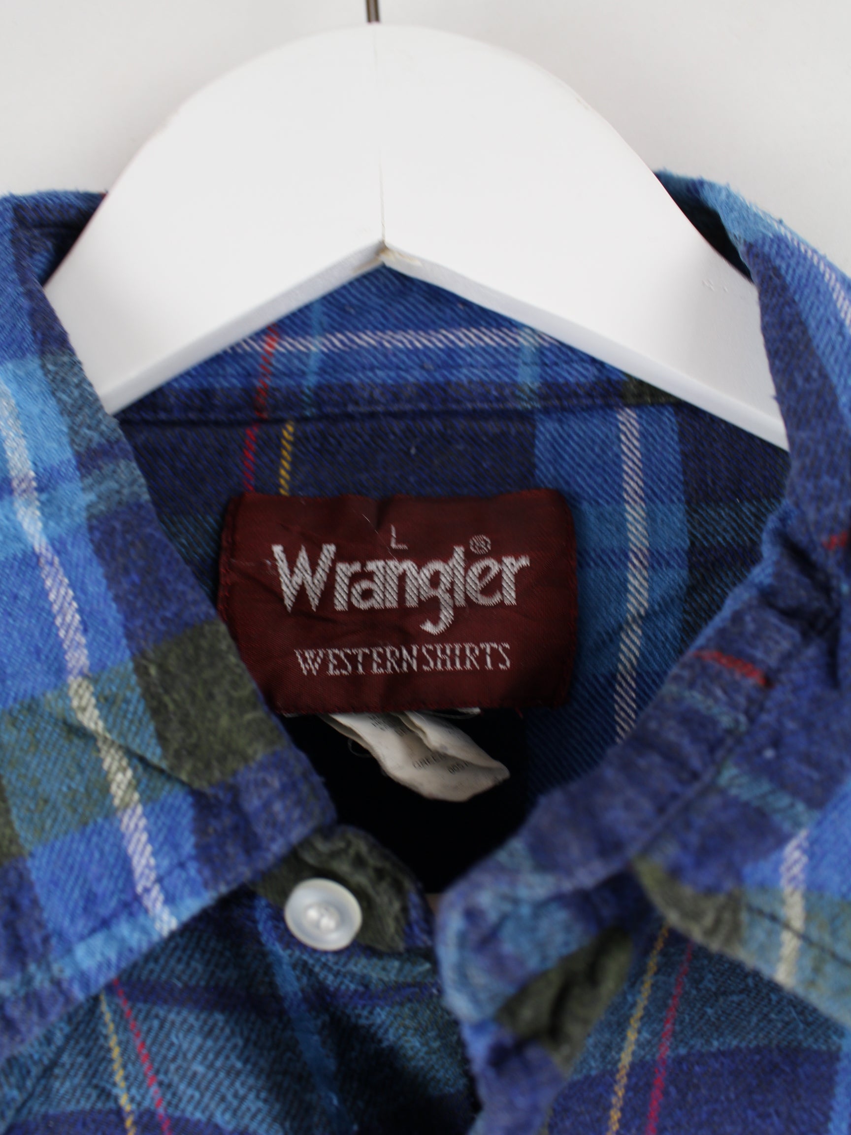 Blue casual shirt from the brand Wrangler from the 80's in size S. It is made of cotton and in good condition in stock.