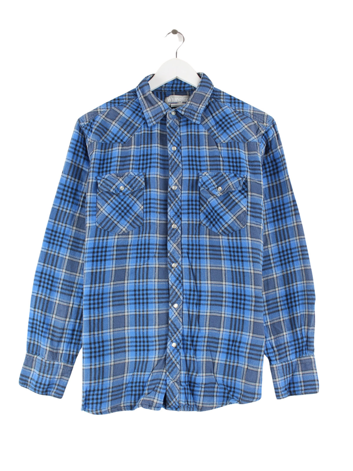 Blue casual shirt by Wrangler from the 90's in size M. It is made of cotton and is available in good condition.