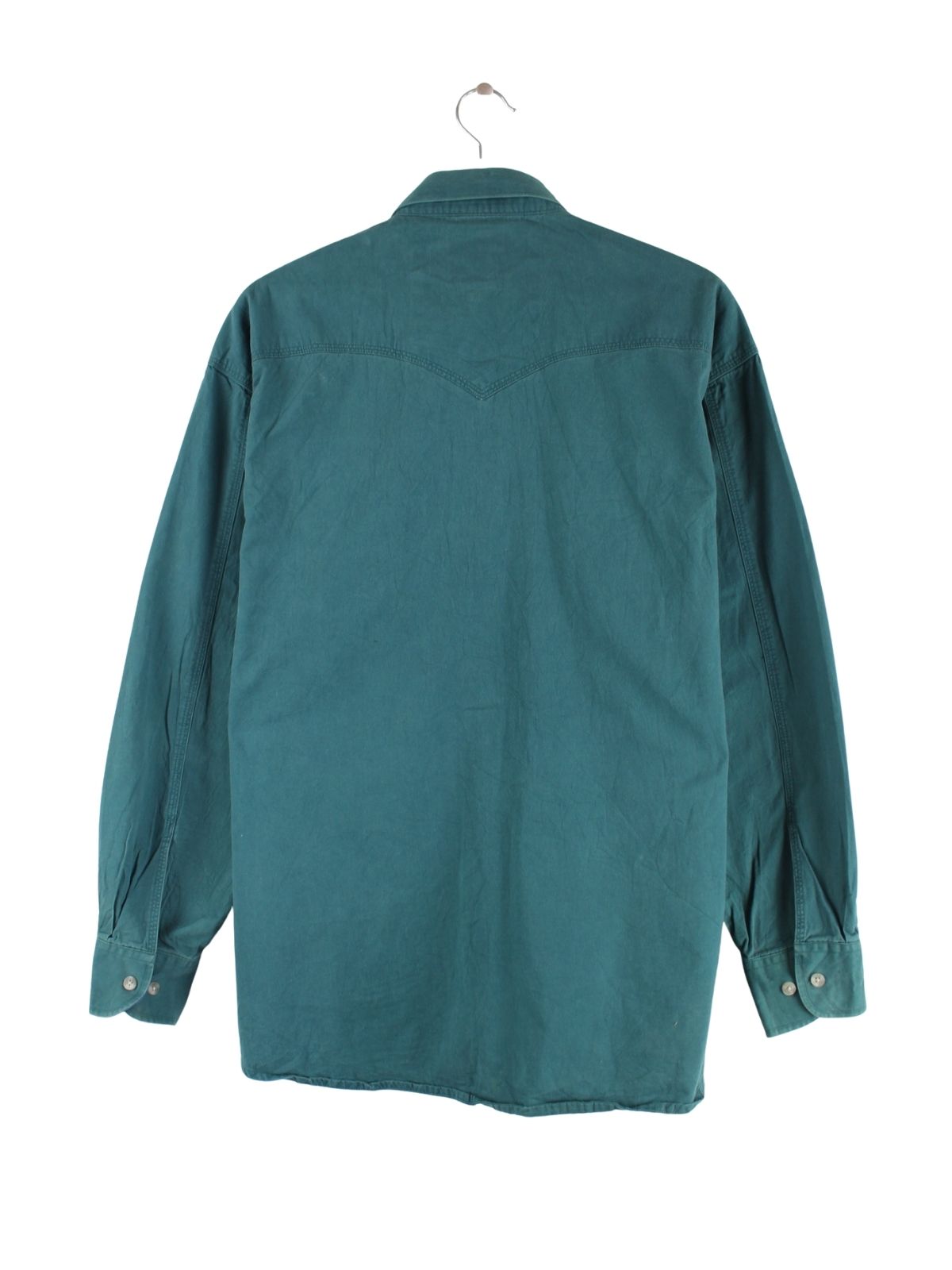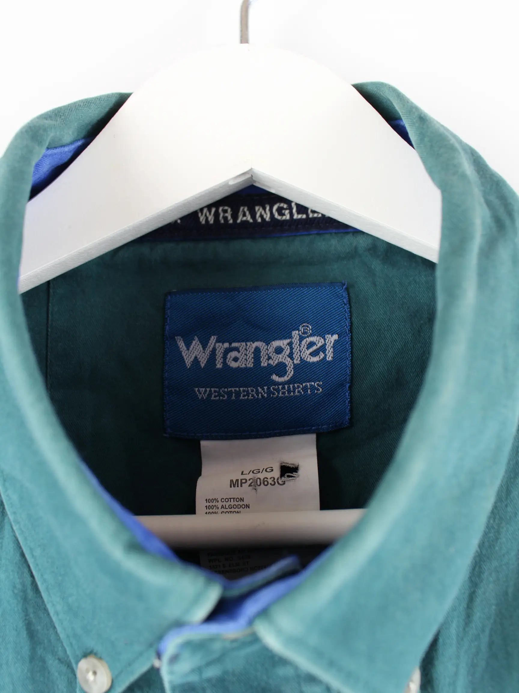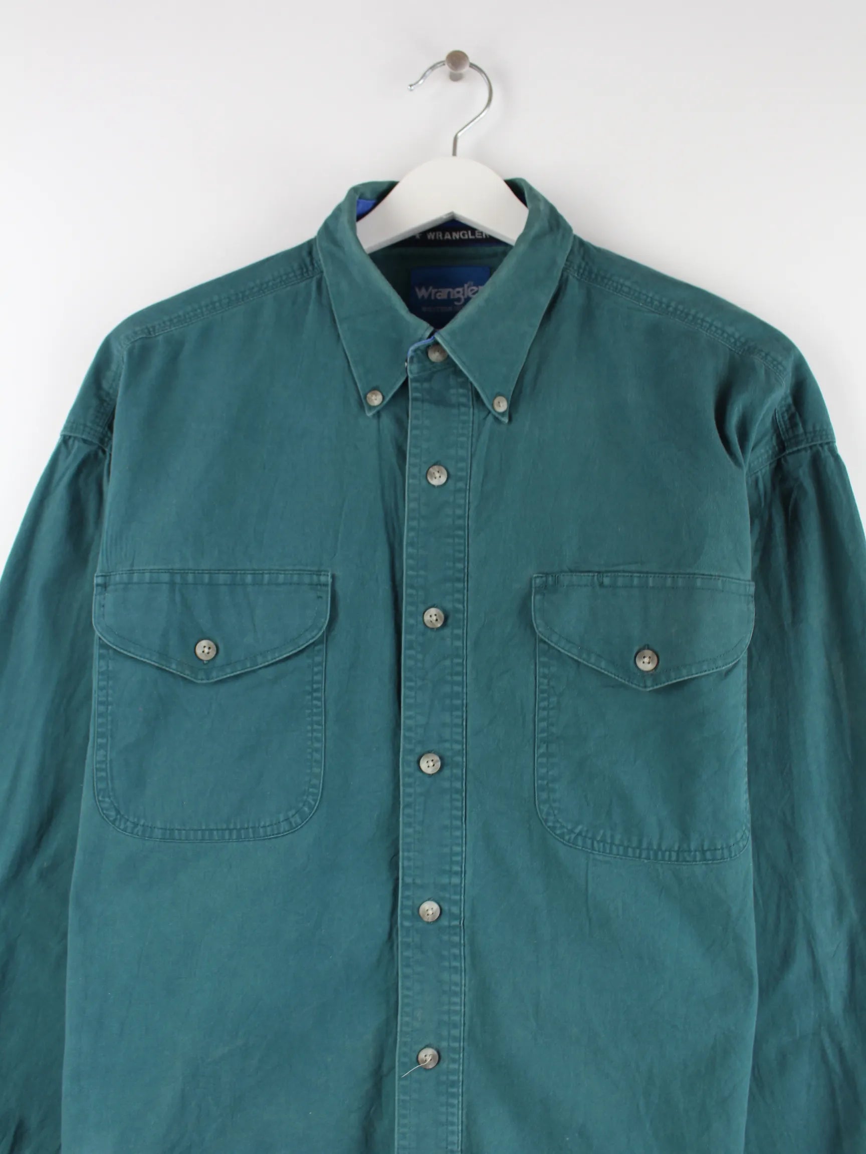 Grünes Freizeit Hemd der Brand Wrangler aus den 90'ern in Größe L. Es ist aus Baumwolle hergestellt und in gutem Zustand in Stock.