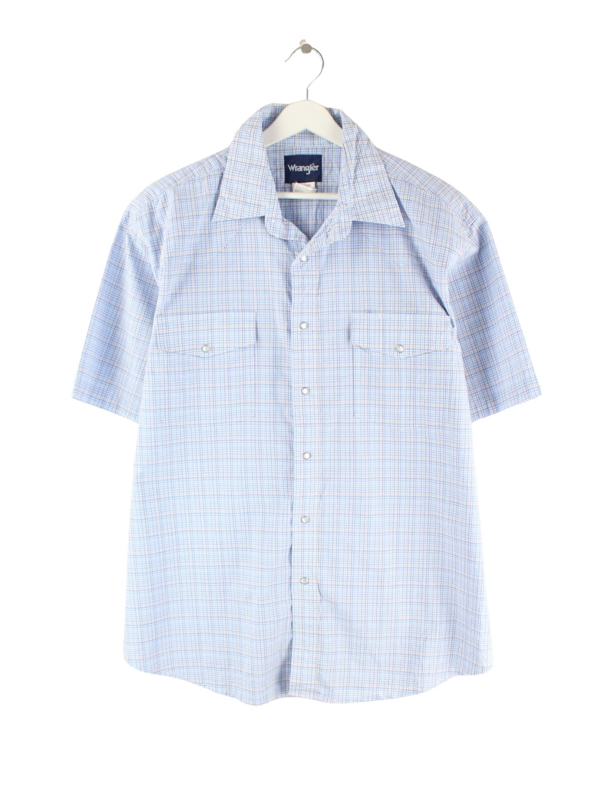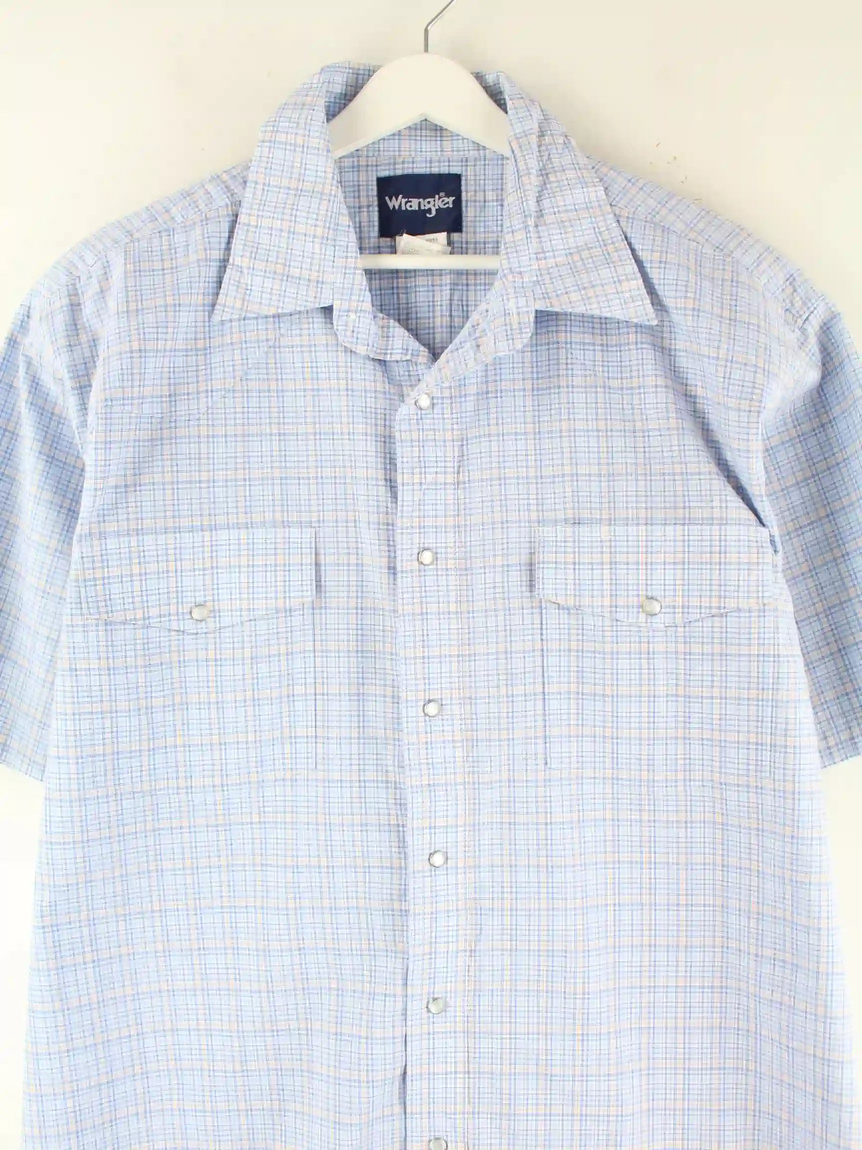 Freizeit Hemd der Brand Wrangler in Größe XL aus den 90'ern. Es ist aus Baumwolle gemacht und in Blau bei uns vorrätig.
