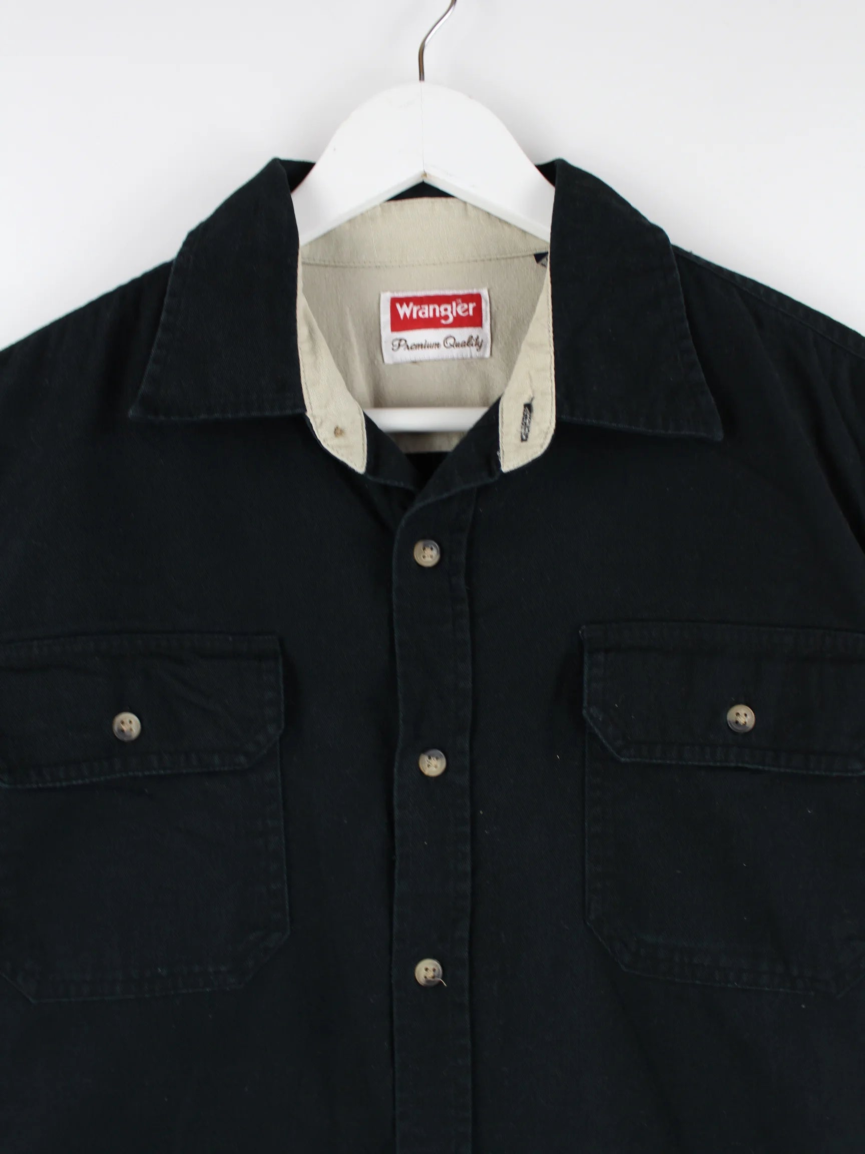 Schwarzes Freizeit Hemd vom Brand Wrangler in Größe M. Es ist aus Baumwolle gefertigt und in sehr gutem Zustand bei uns zu bekommen.