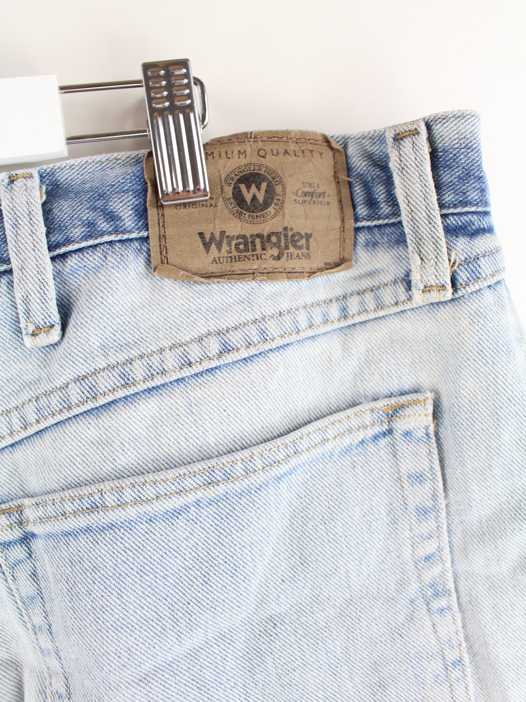 Blue shorts from the brand Wrangler in size W42. They are made of cotton. We would describe the condition as 'fine' (see pictures).