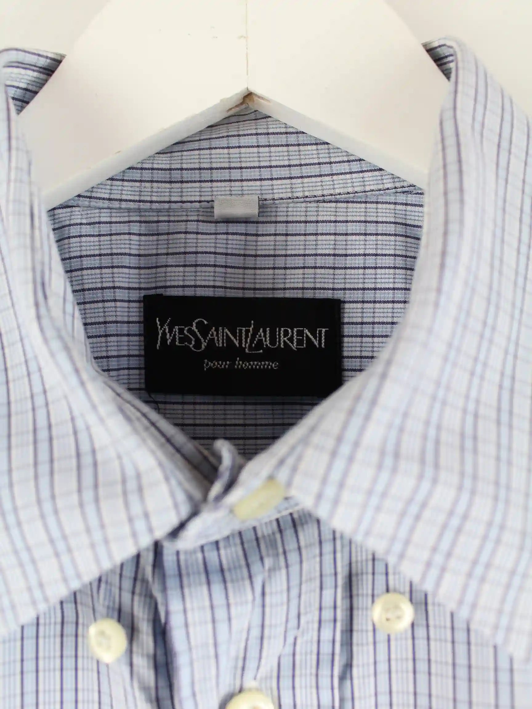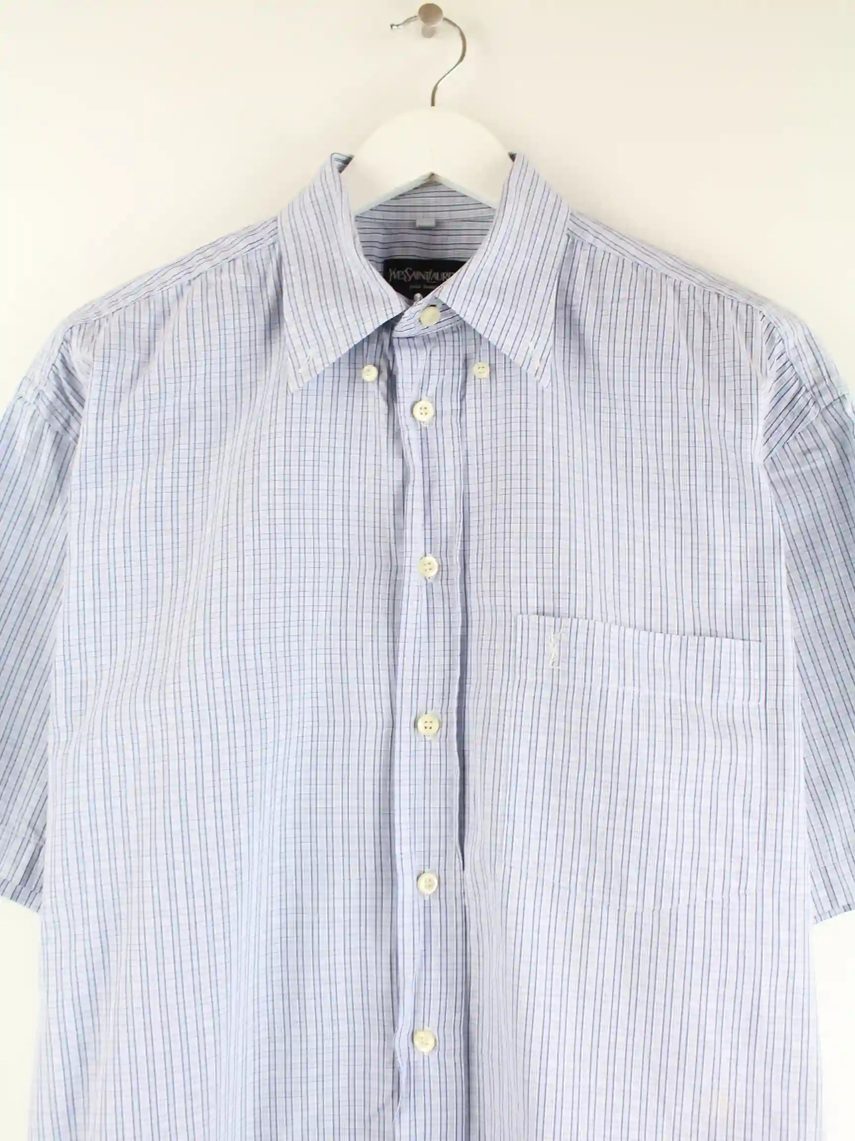 Yves Saint Laurent 90s Vintage Kurzarm Hemd Blau L