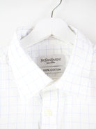 Weißes Hemd des Labels Yves Saint Laurent aus den 90'ern in Größe L. Es ist aus Baumwolle gemacht und in gutem Zustand bei uns vorrätig.