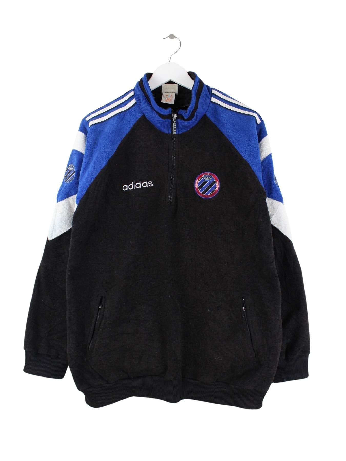 Adidas 90s Vintage Brügge Embroidered Half Zip Fleece Sweater Schwarz XL