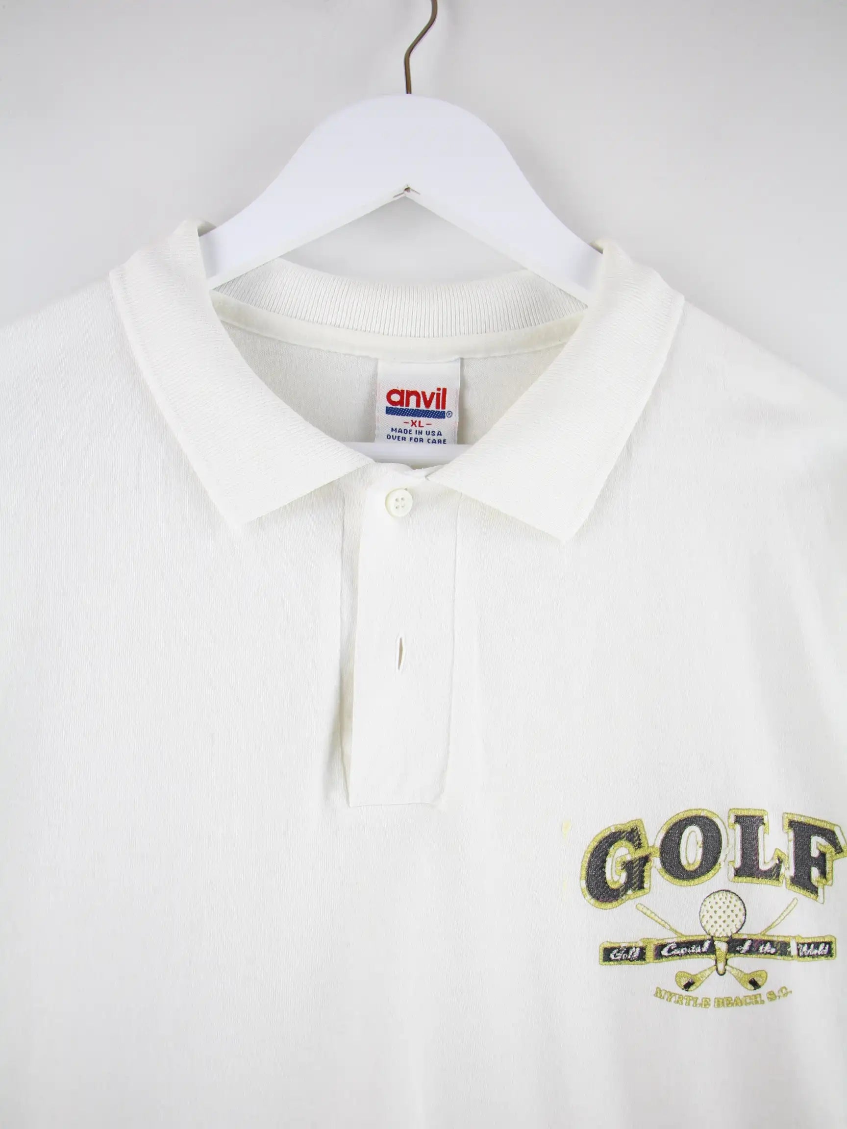 Anvil 90s Vintage Golf Print Polo Weiß XL