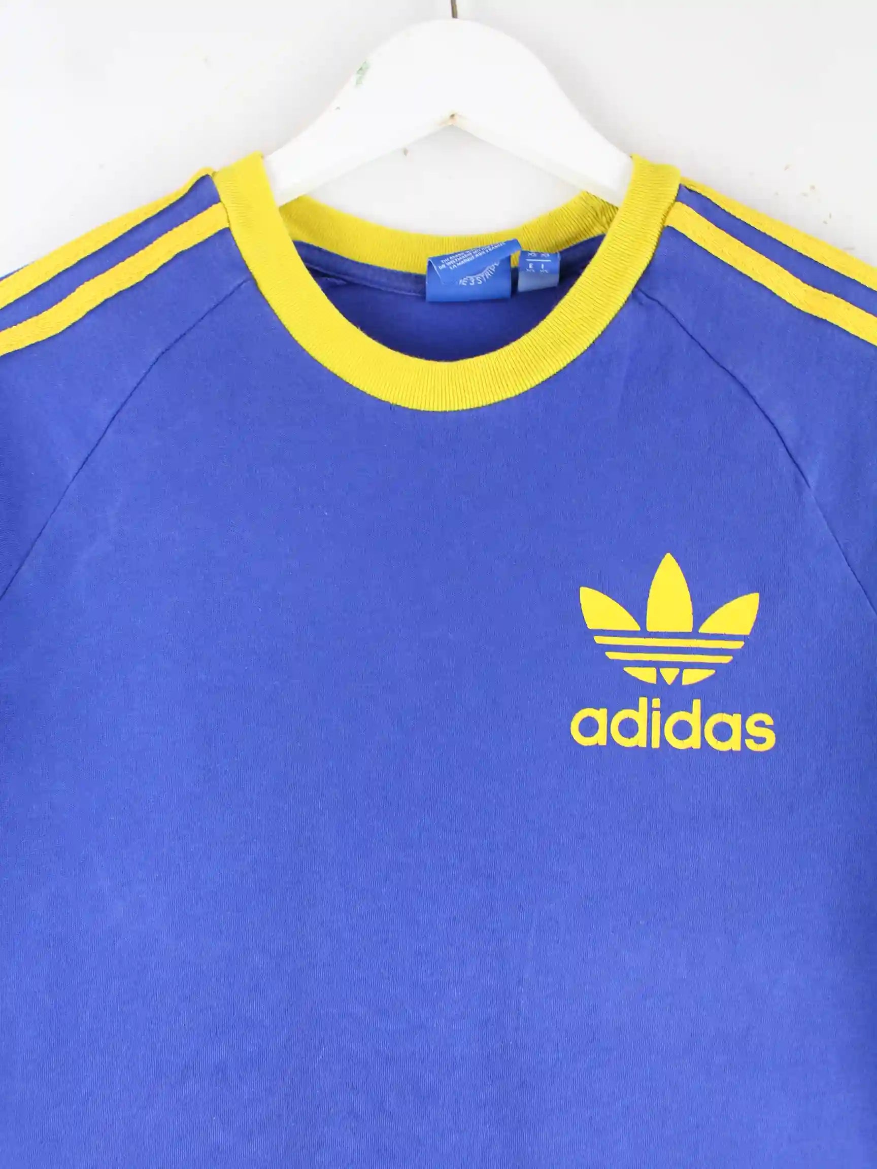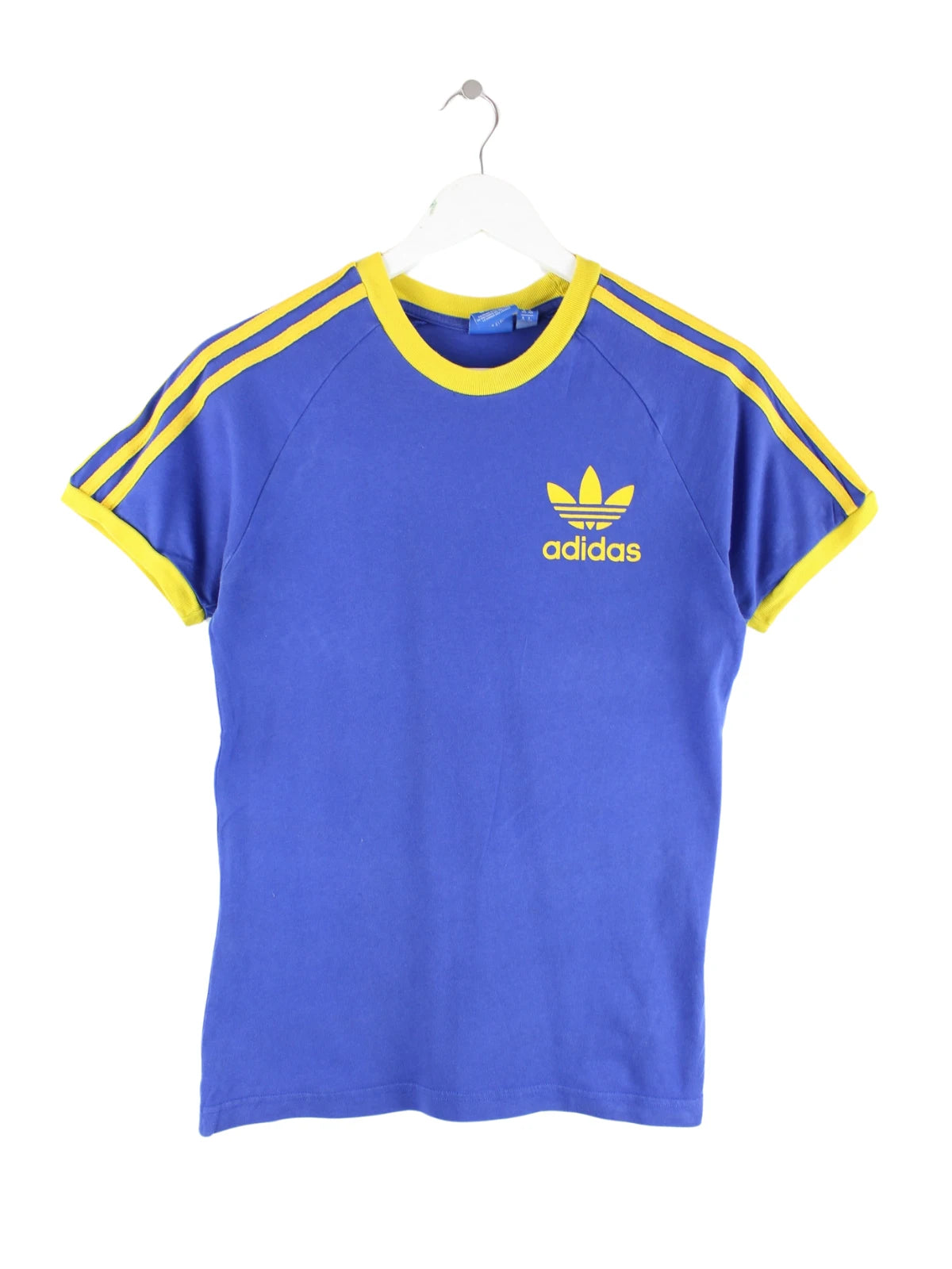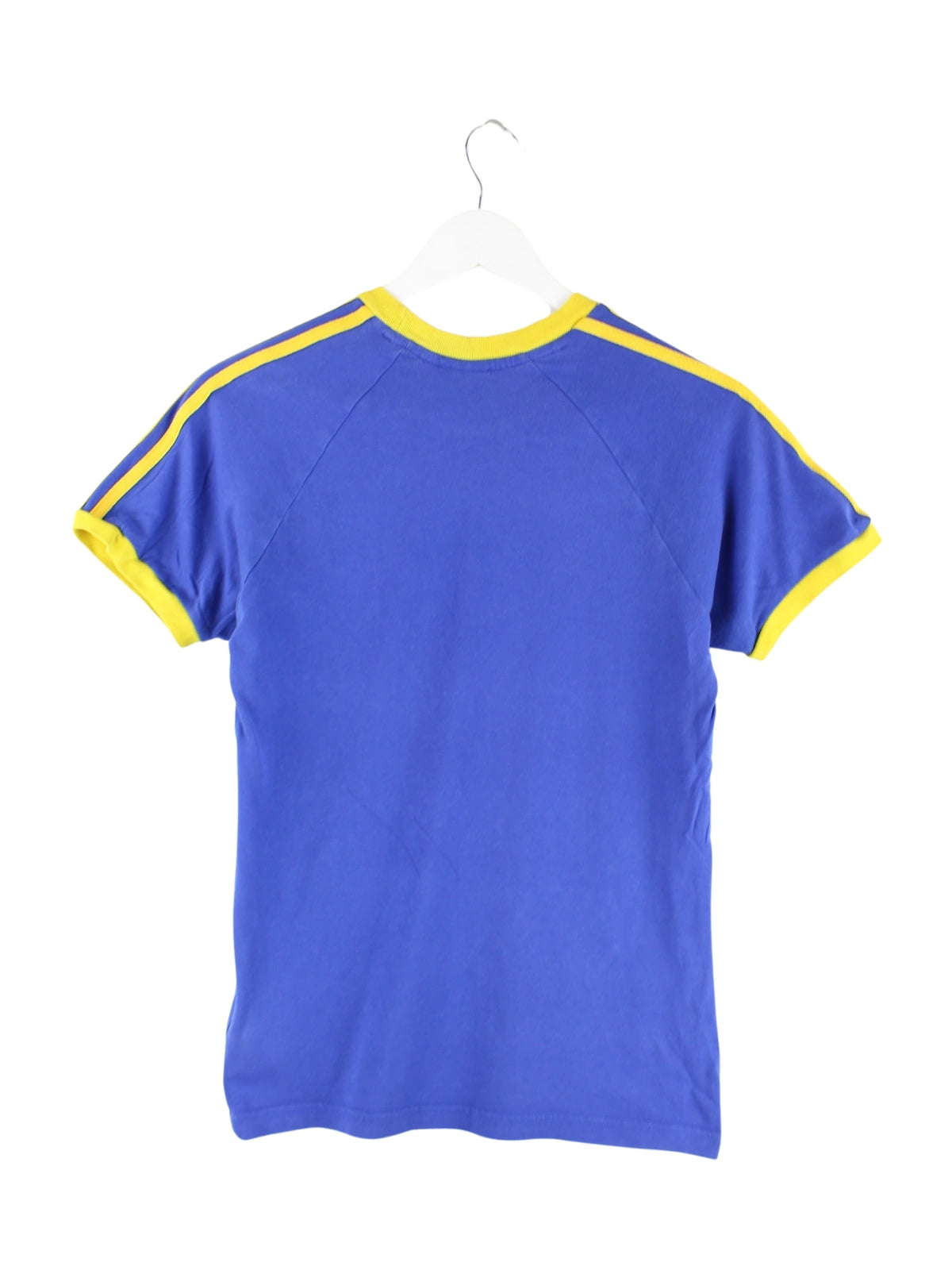 T-Shirt vom Brand Adidas in Größe XS. Es ist aus Baumwolle angefertigt und in Blau auf Lager.