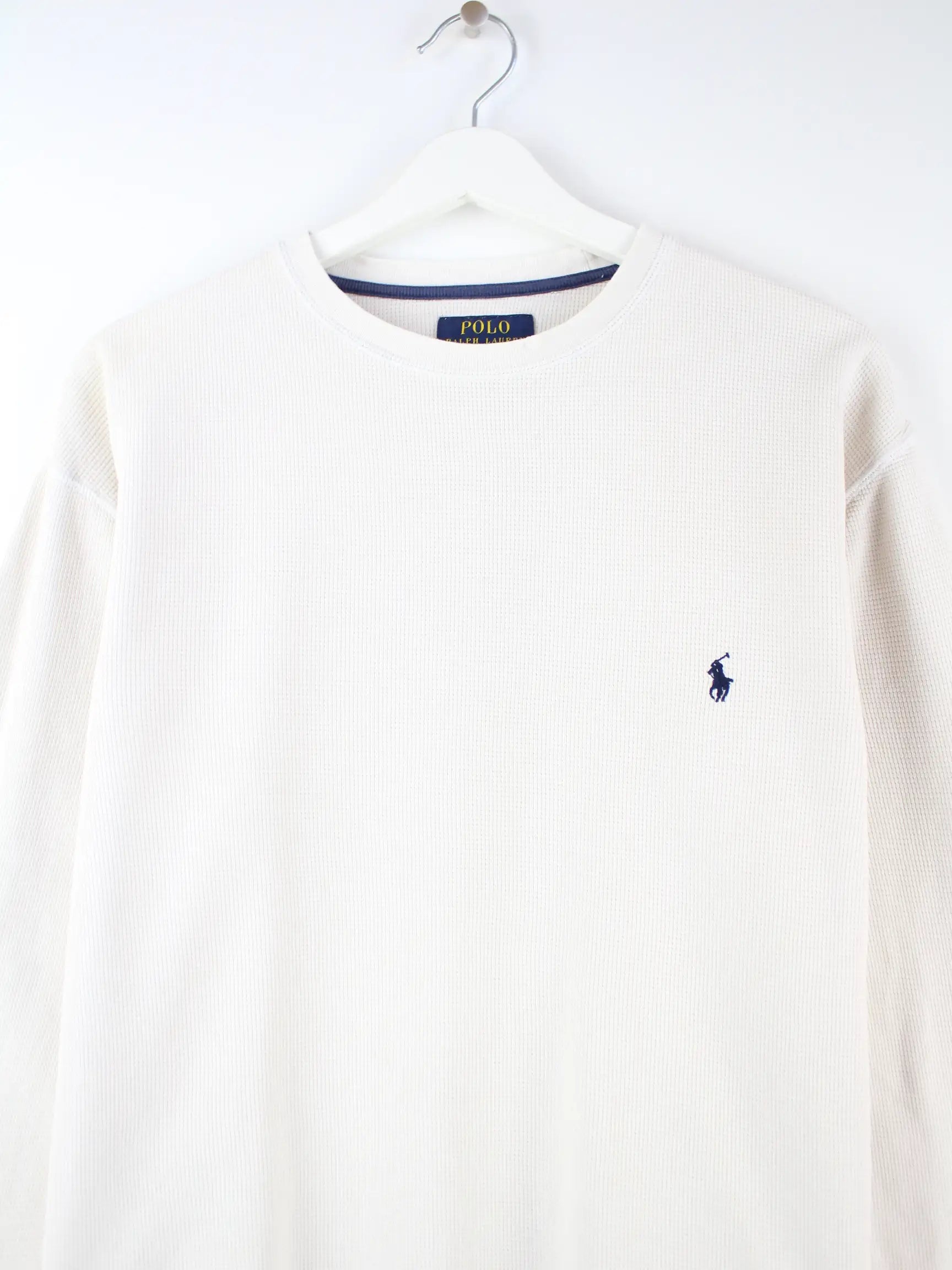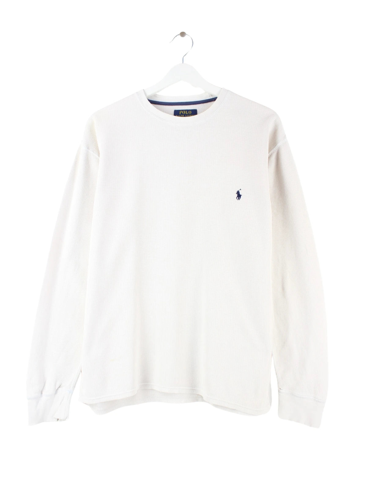 Sweatshirt vom Label Ralph Lauren in Größe L. Es ist aus Baumwolle hergestellt und in Weiß zu haben.