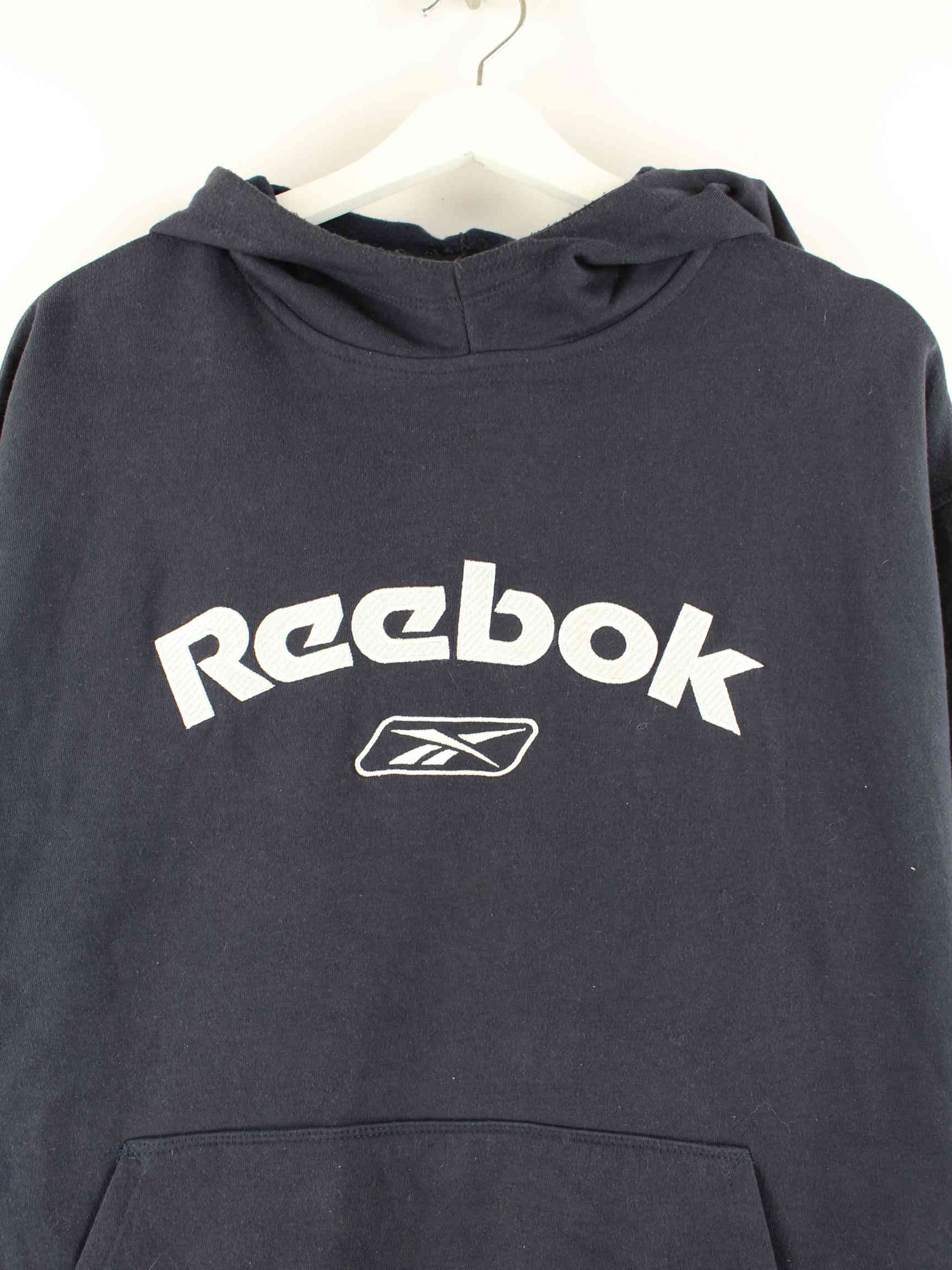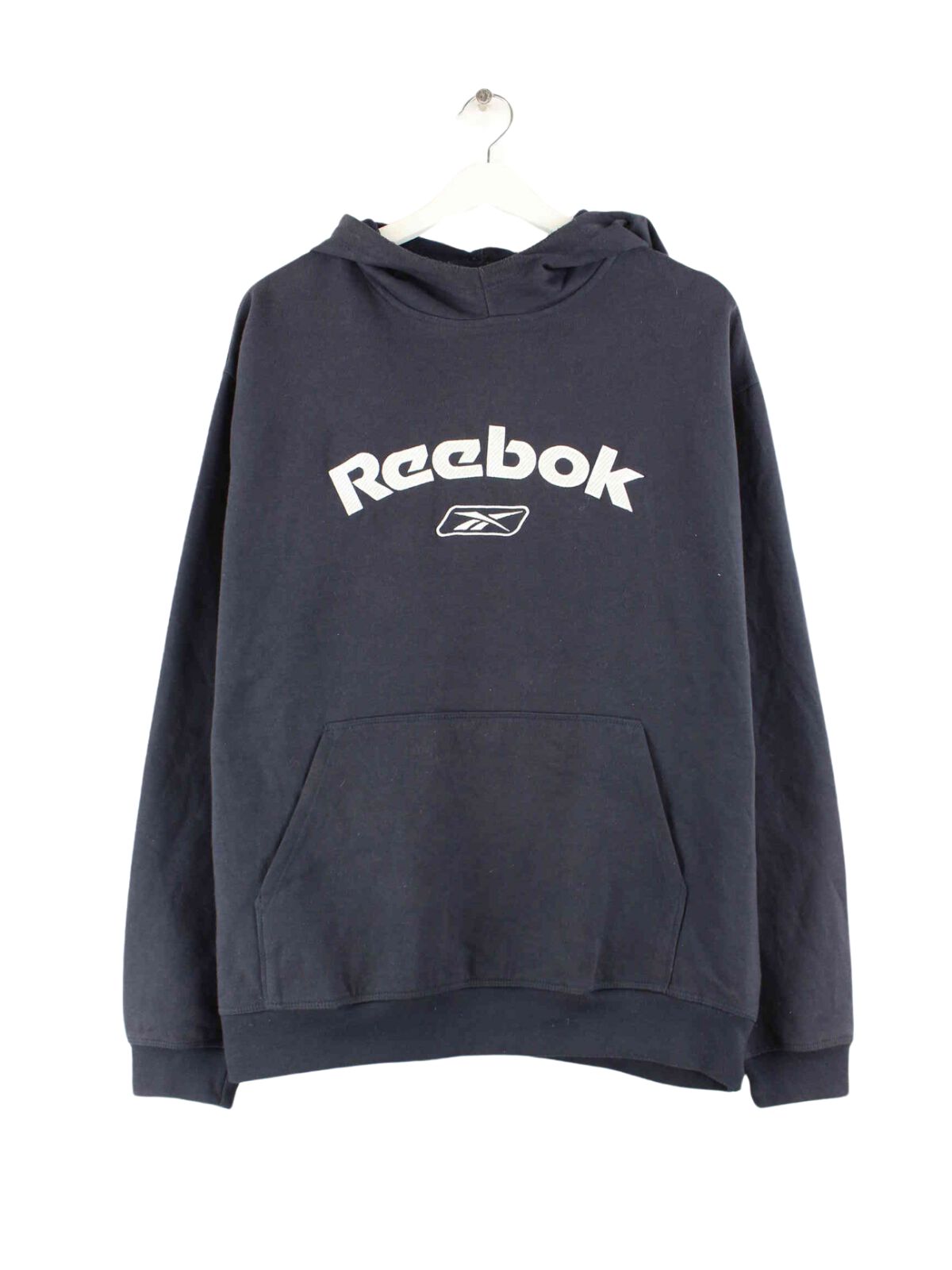 Hoodie vom Label Reebok mit Stickereien in Größe L aus Anfang der 2000'er. Er ist aus einer Baumwollmischung gemacht und in Blau bei uns vorrätig.