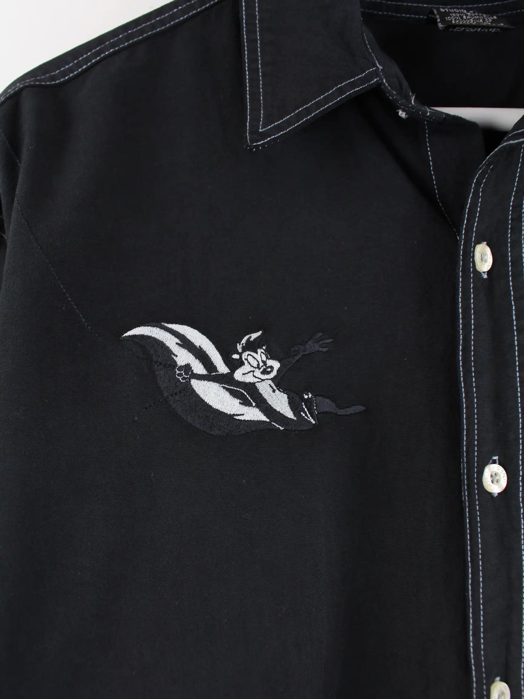 Warner Bros 00s Looney Tunes Dyed Rework Jeans Hemd Schwarz L