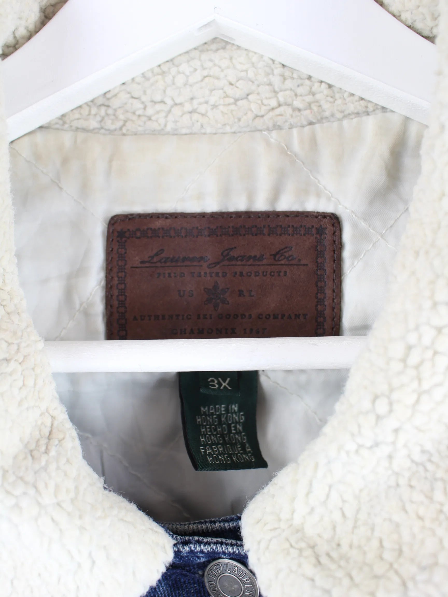 Ralph Lauren Damen 90s Vintage Sherpa Jeans Jacke Blau 3XL