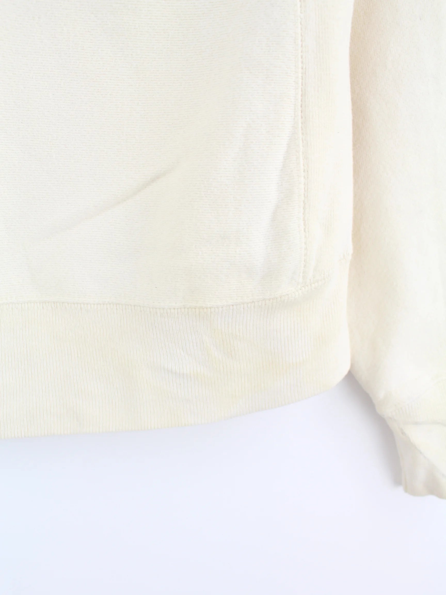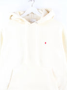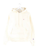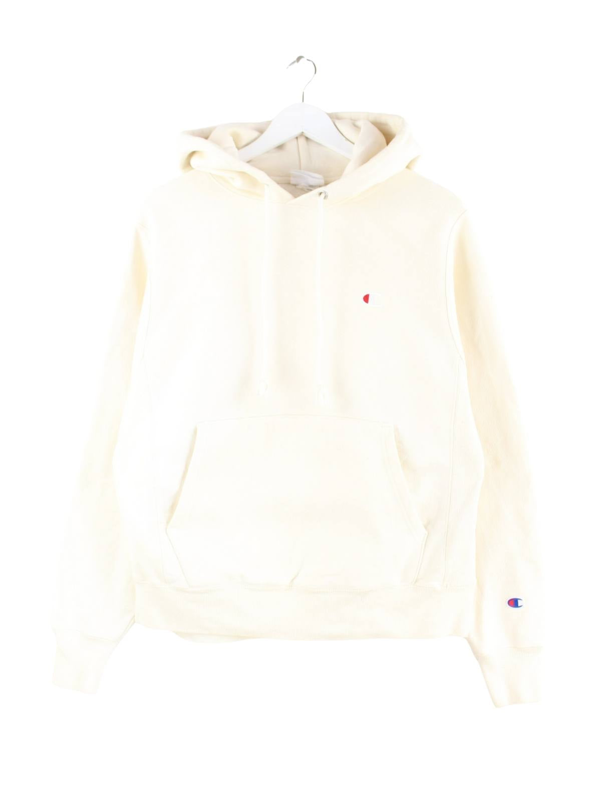 Beigefarbener Hoodie vom Label Champion in Größe S. Er ist aus einer Baumwollmischung hergestellt. Den Zustand würden wir als 'In Ordnung' bezeichnen (vergl. Bilder).