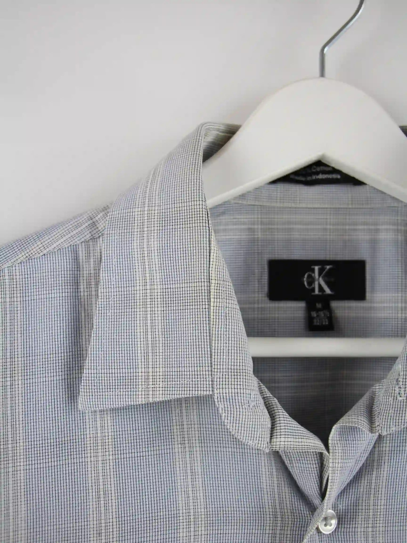 Graues Hemd der Brand Calvin Klein in Größe M. Es ist aus Baumwolle produziert und in gutem Zustand bei uns vorrätig.