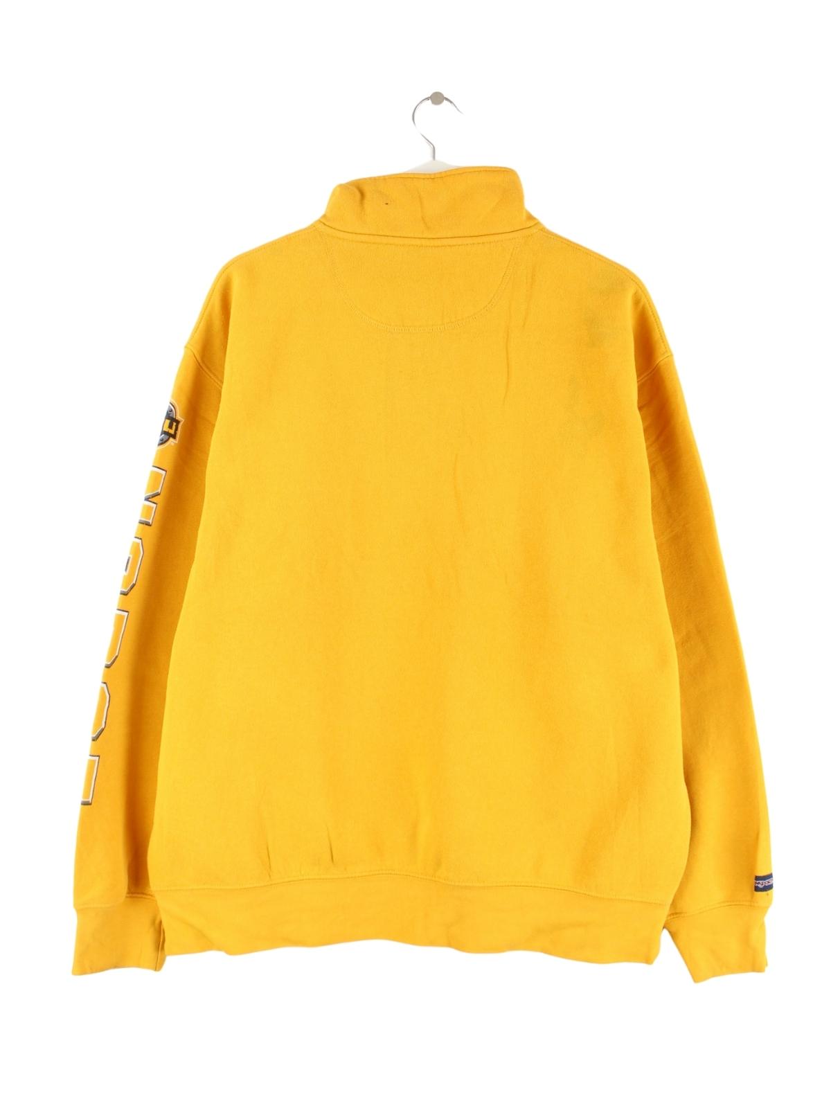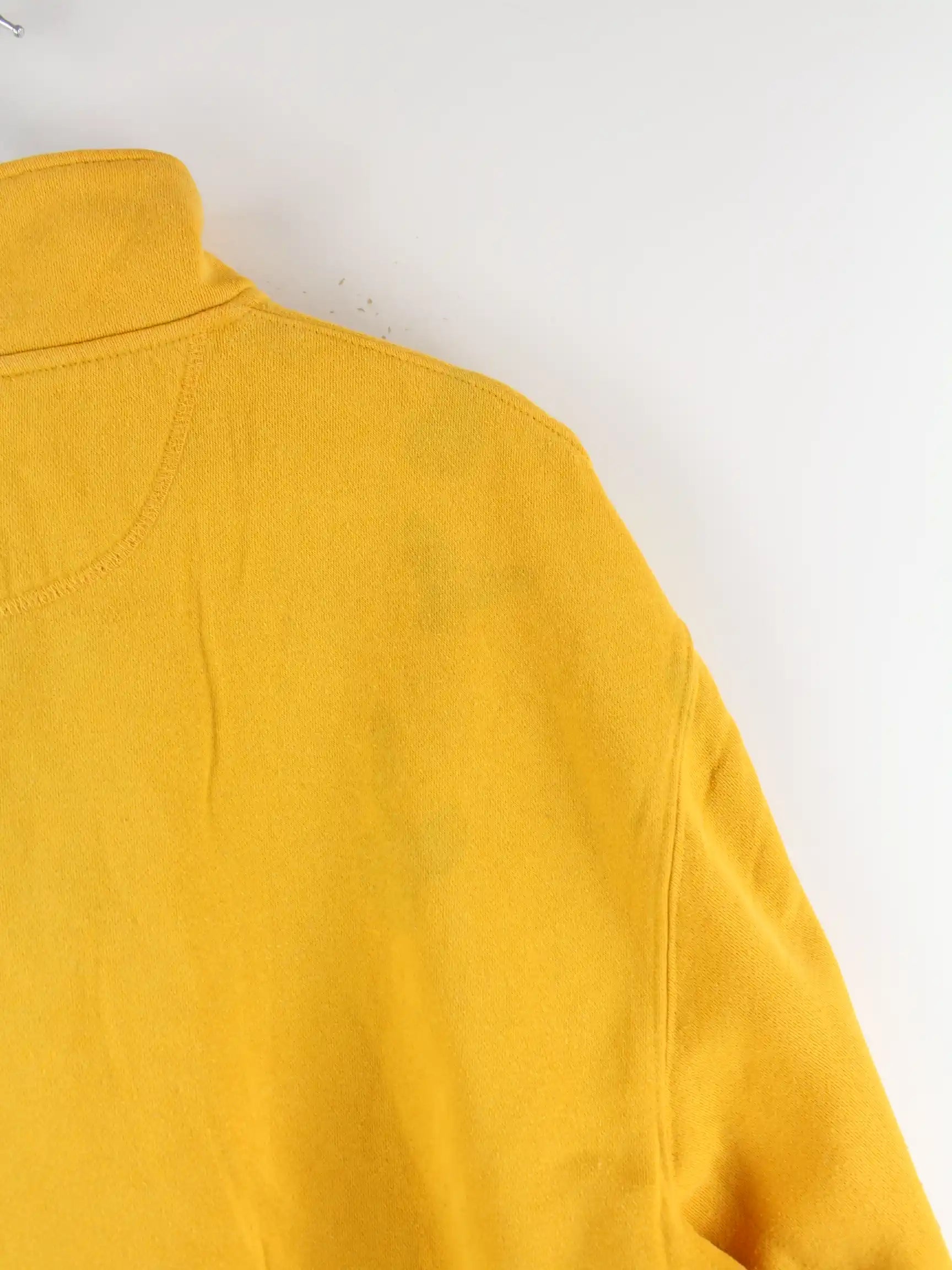 Sweater aus dem Hause Jansport mit halbem Reißverschluß in Größe XL. Er ist aus einer Baumwollmischung gemacht und in Gelb im Angebot.